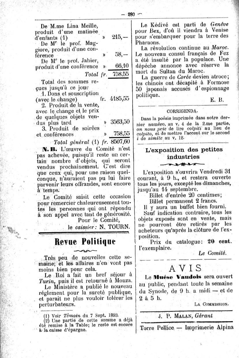 — Souscription pour nos établissenjents d’instruçtion. — Revue polUn