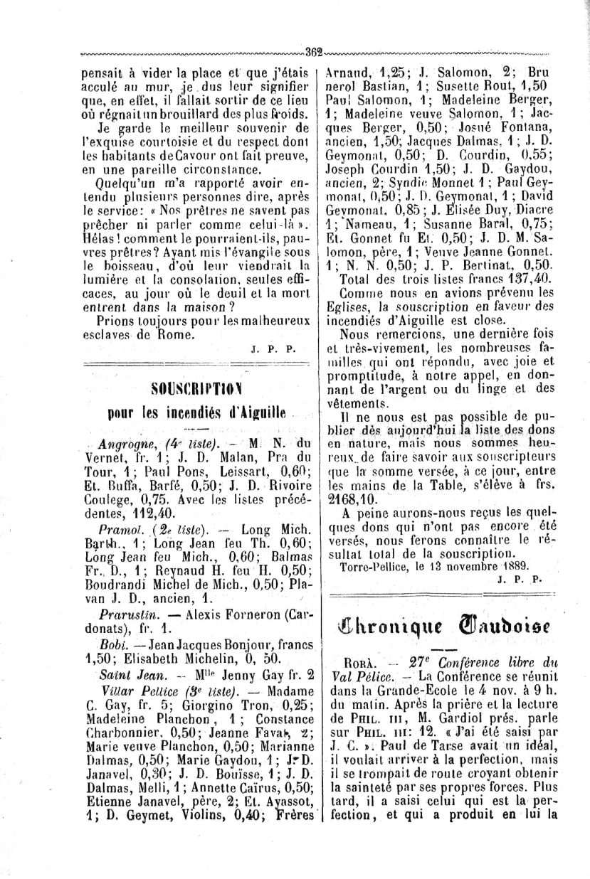 Evangélisation. — Souscription pour Aiguilles. ■' Cbroiiique vaudoise. — Revue politique. — Annonces.