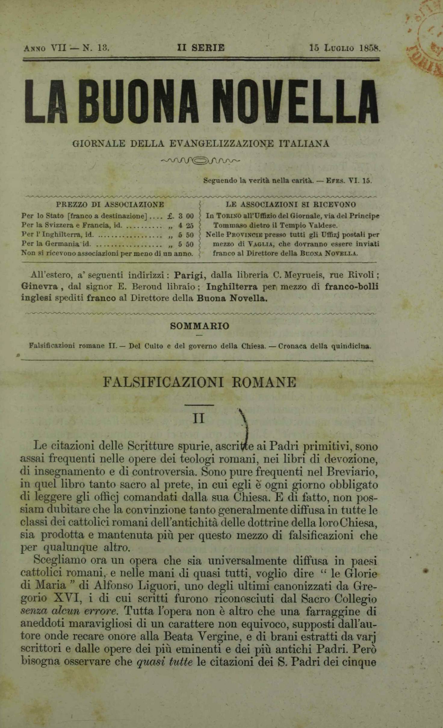 AUNO VII — N. 13. II SERIE 15 Luolio 1858.