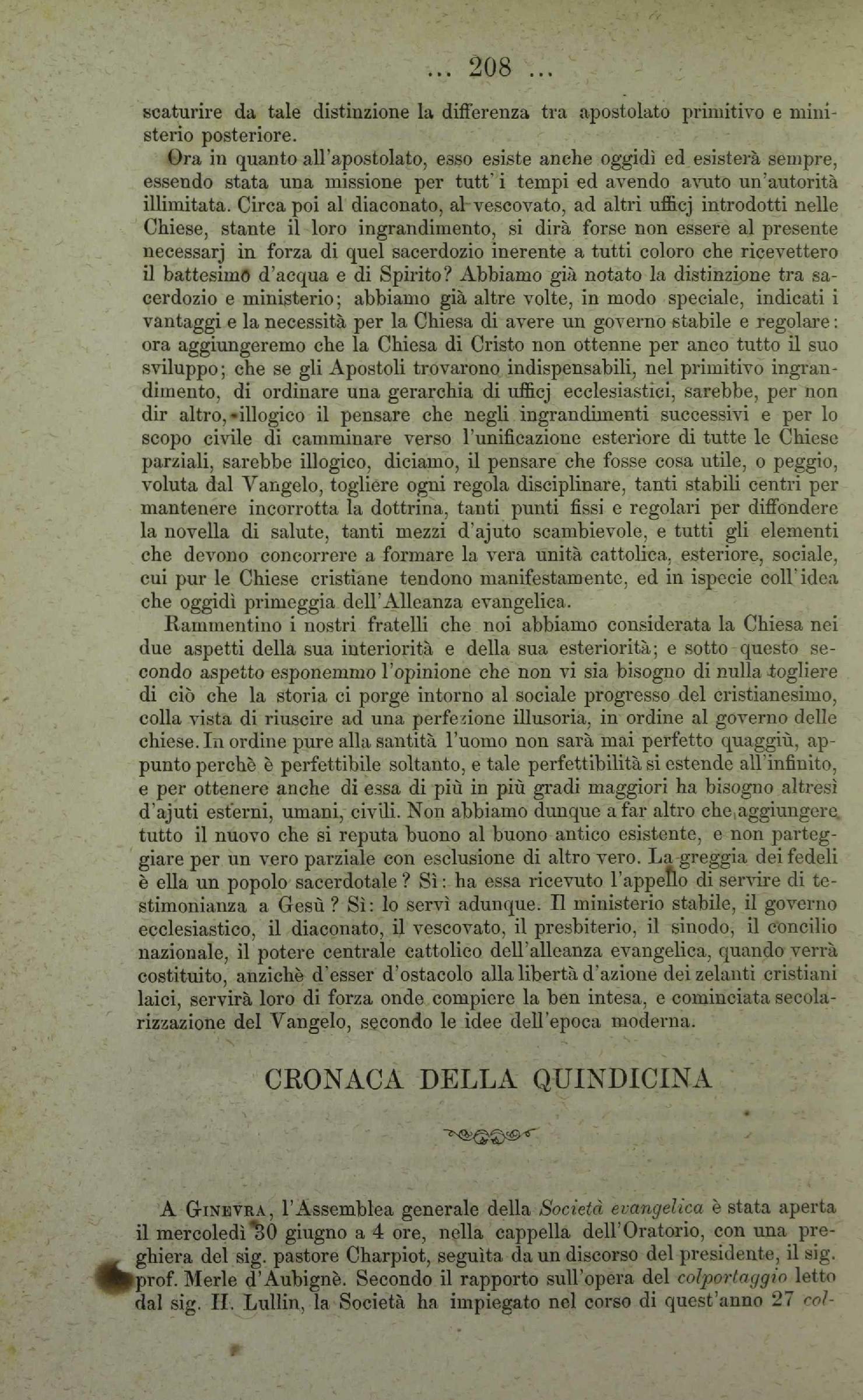 di queste novelle chiese, che in tutto non contano ancora che 300 comunicanti circa. Il sig. Federico Monod invita la Società Evangelica, a nome