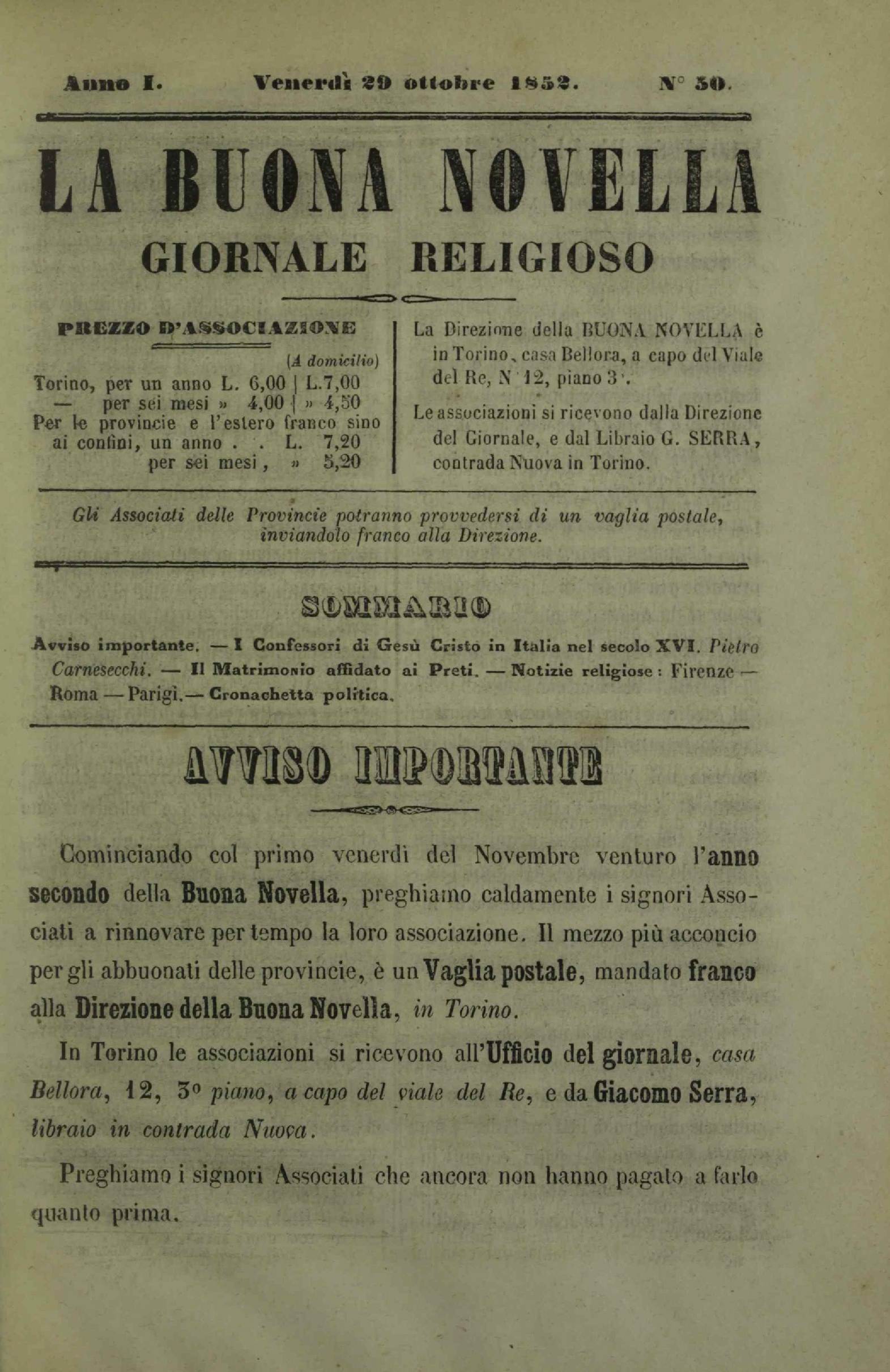 secondo della Buona Novella, preghiamo caldamente i signori Associati a rinnovare per tempo la loro associazione. Il mezzo più acconcio