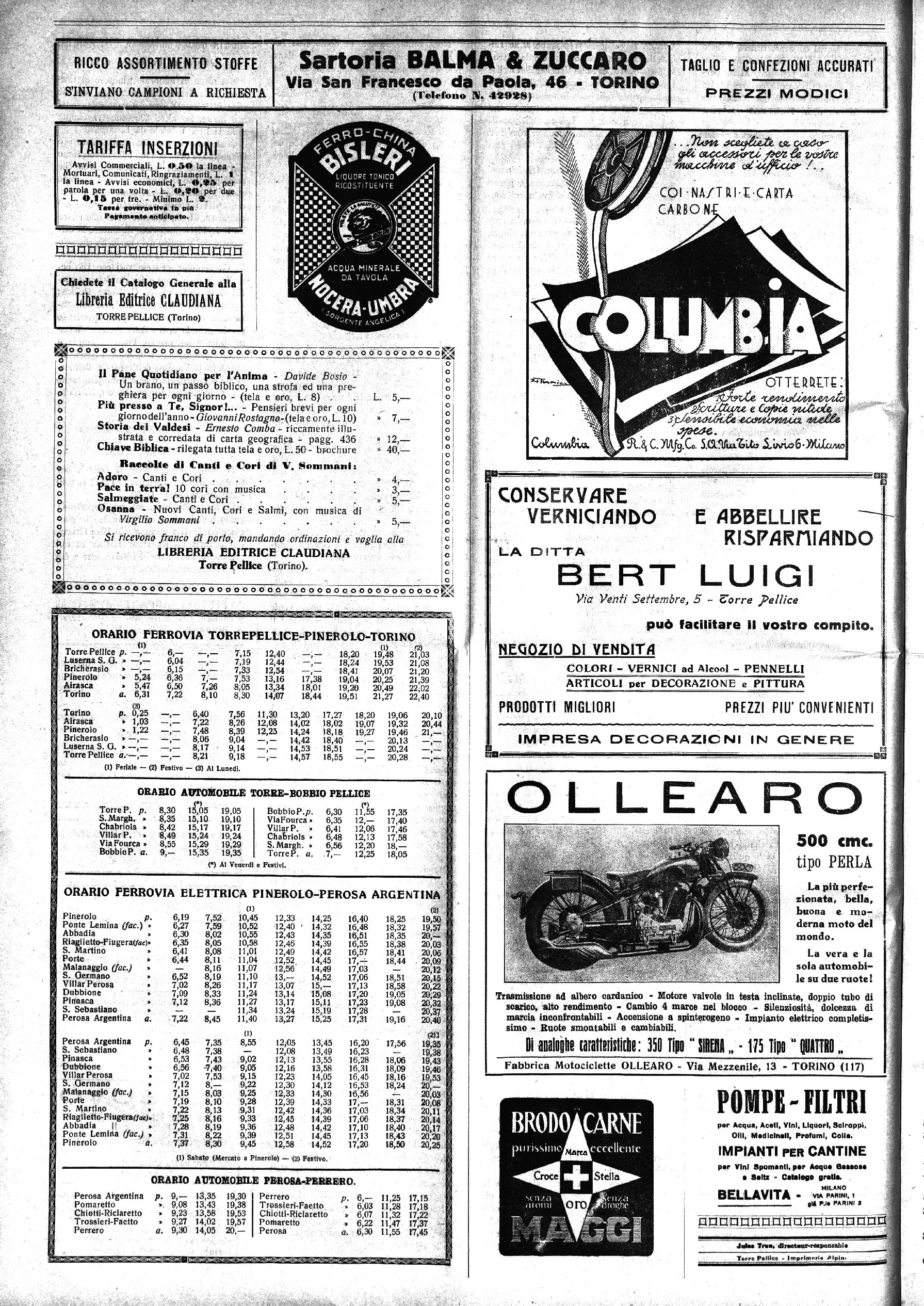 ORARIO FERROVIA ELETTRICA PINEROLO-PEROSA ARGENTINA