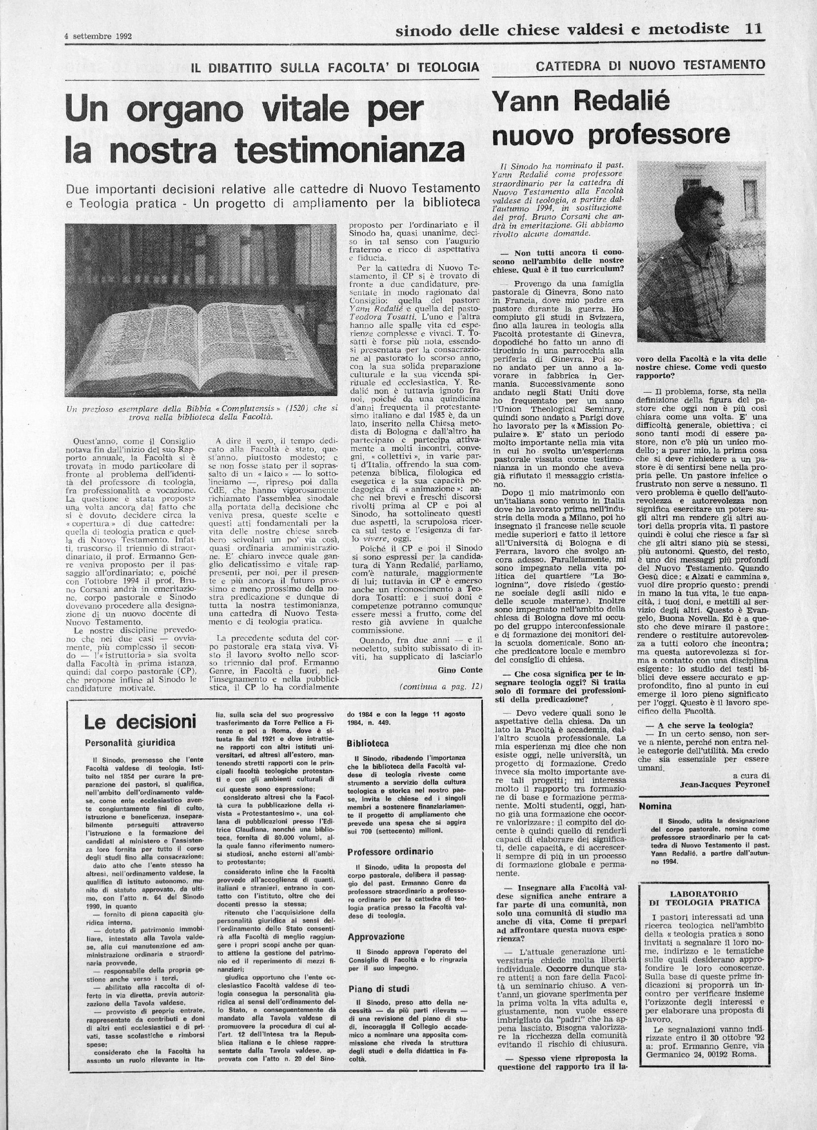settimanale congiunto di battisti, metodisti e valdesi. Il Sinodo aveva a disposizione un numero di saggio, ma tutte le