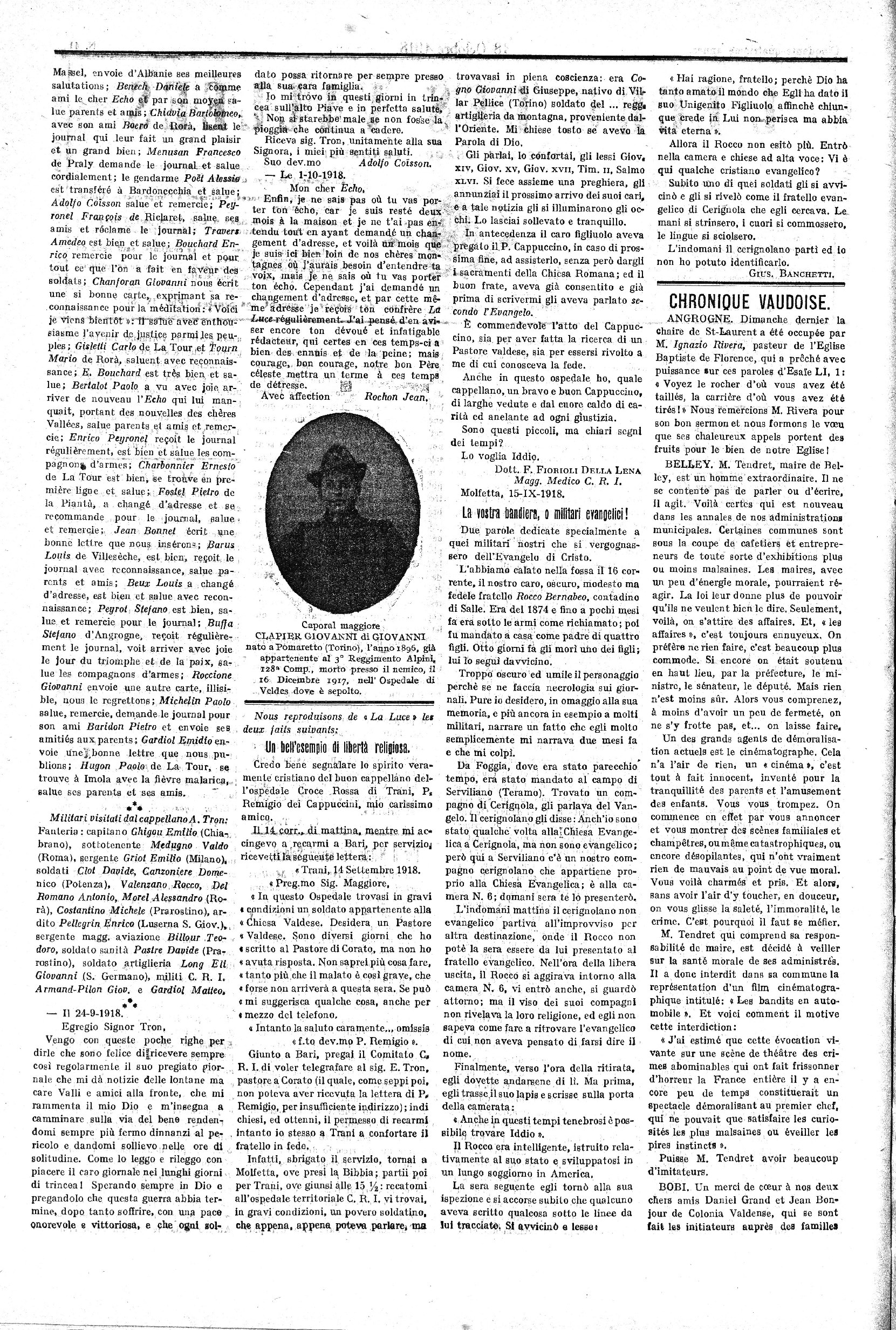 di libertà religiosa — Chronique vaudoise — Bibliographie — Nouvelles