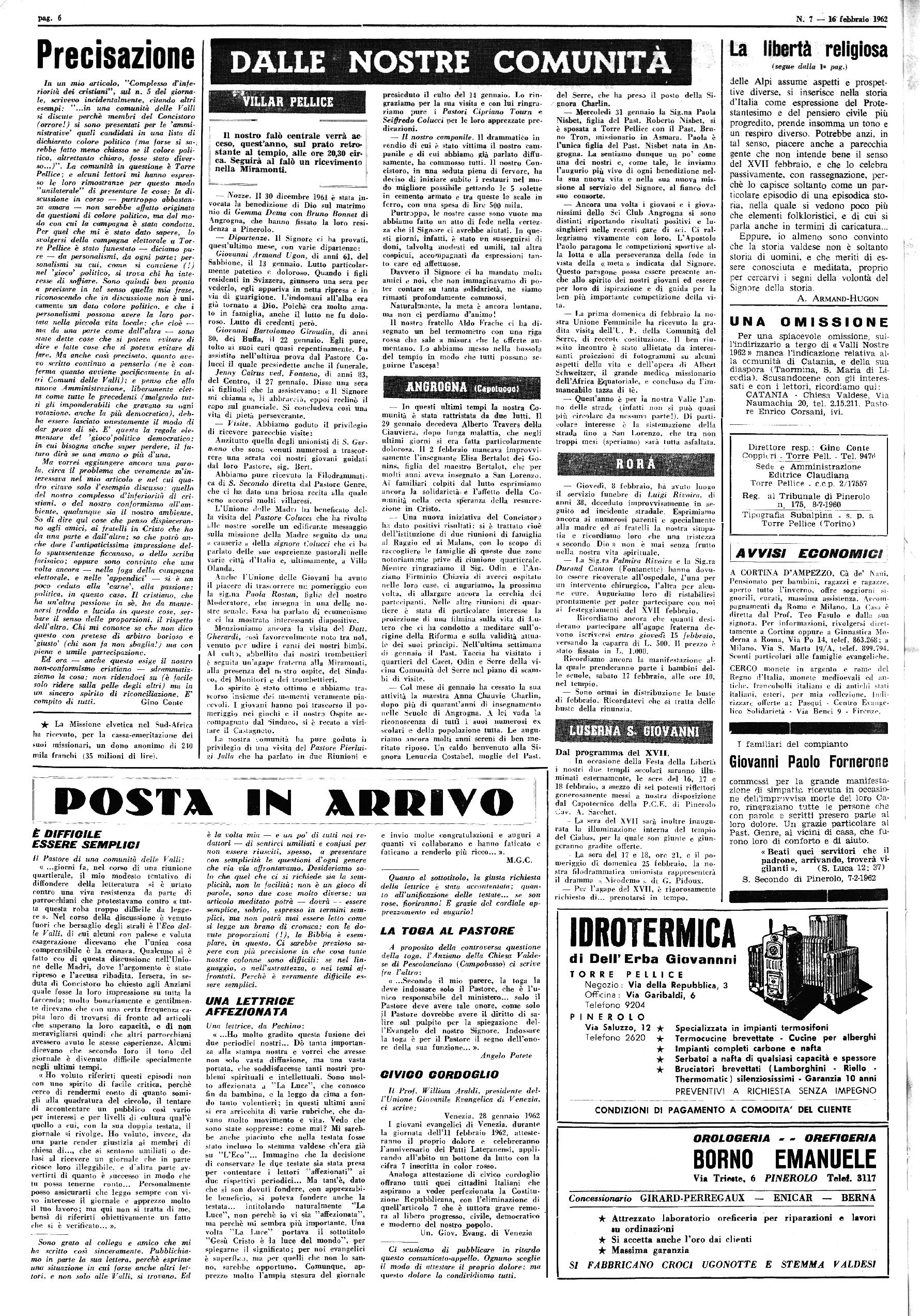 Anno XCII — Num. 7 I ABBONAMENTI f Eco: L. 1.300 per rinierno « Eco » e « Presenza Evangelica » Spediz. abb. postale • I Gruppo 1 TORRE PELUCE — IG Febbraio 1962