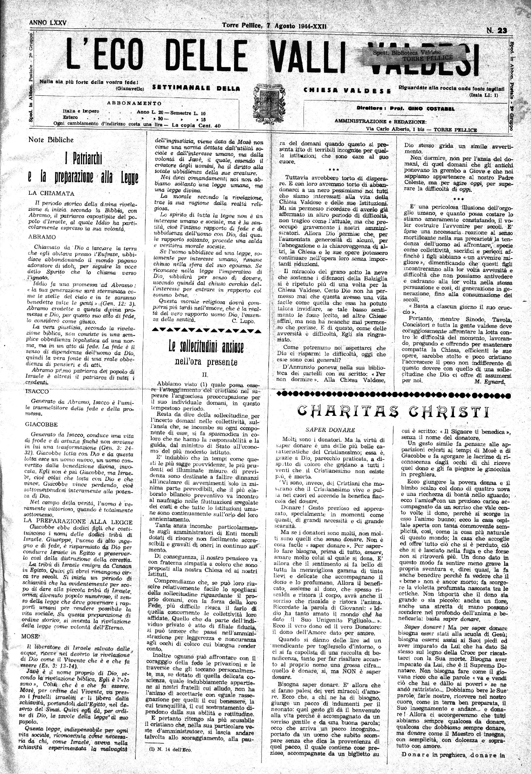 — Domenica 30 luglio, nel coirao del nostro culto nel tempio del Serre, abbiamo