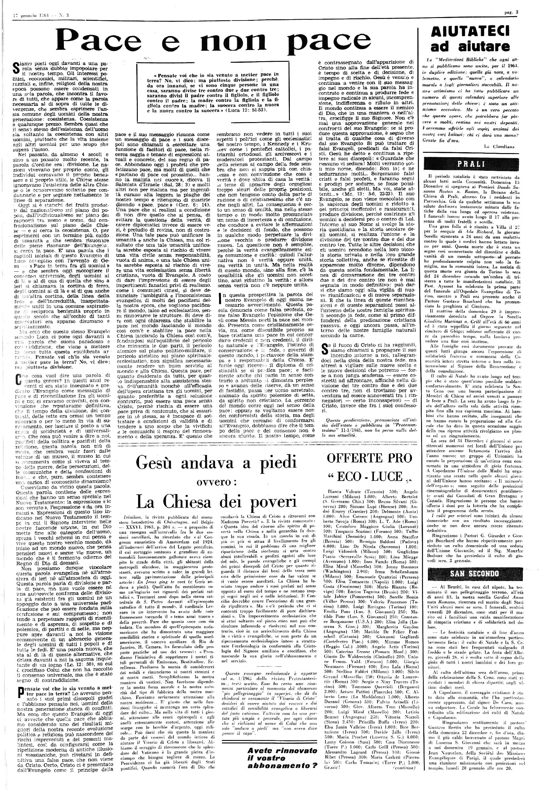 TORRE PELLICE, 17 Gennaio 1964