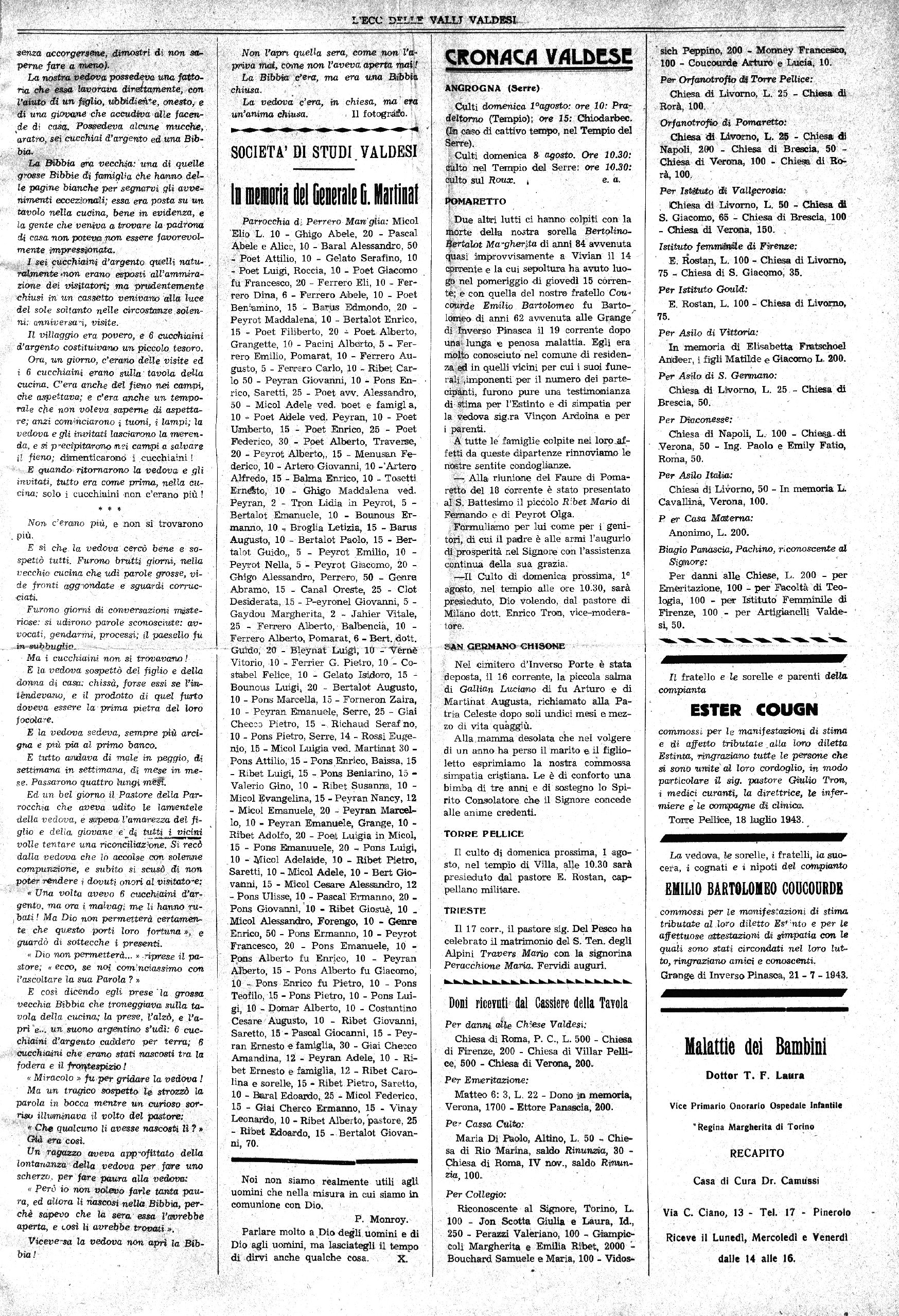 della Repubblica, 21. Culti: 1® domenica. Pastore; Davide Pons, Albeì^