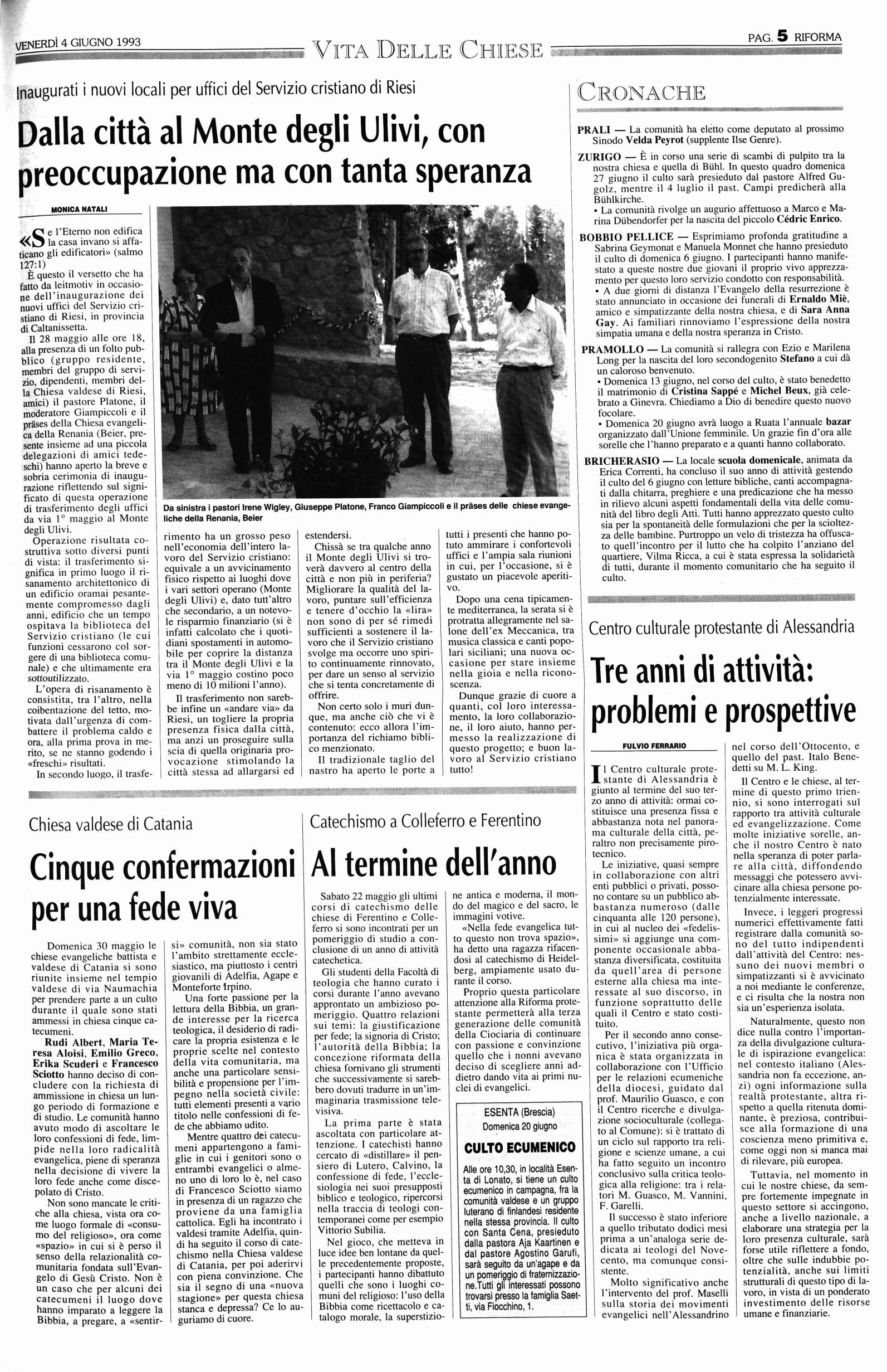 SETTIMANALE DELLE CHIESE EVANGELICHE BATTISTE, METODISTE, VALDESI