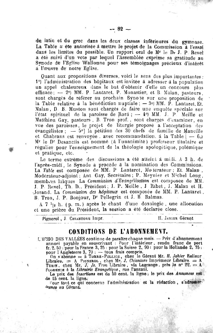 Modérateur-adjoint; Ant. Gay, Secrétaire; P. Meyuier et Mmhel Long,