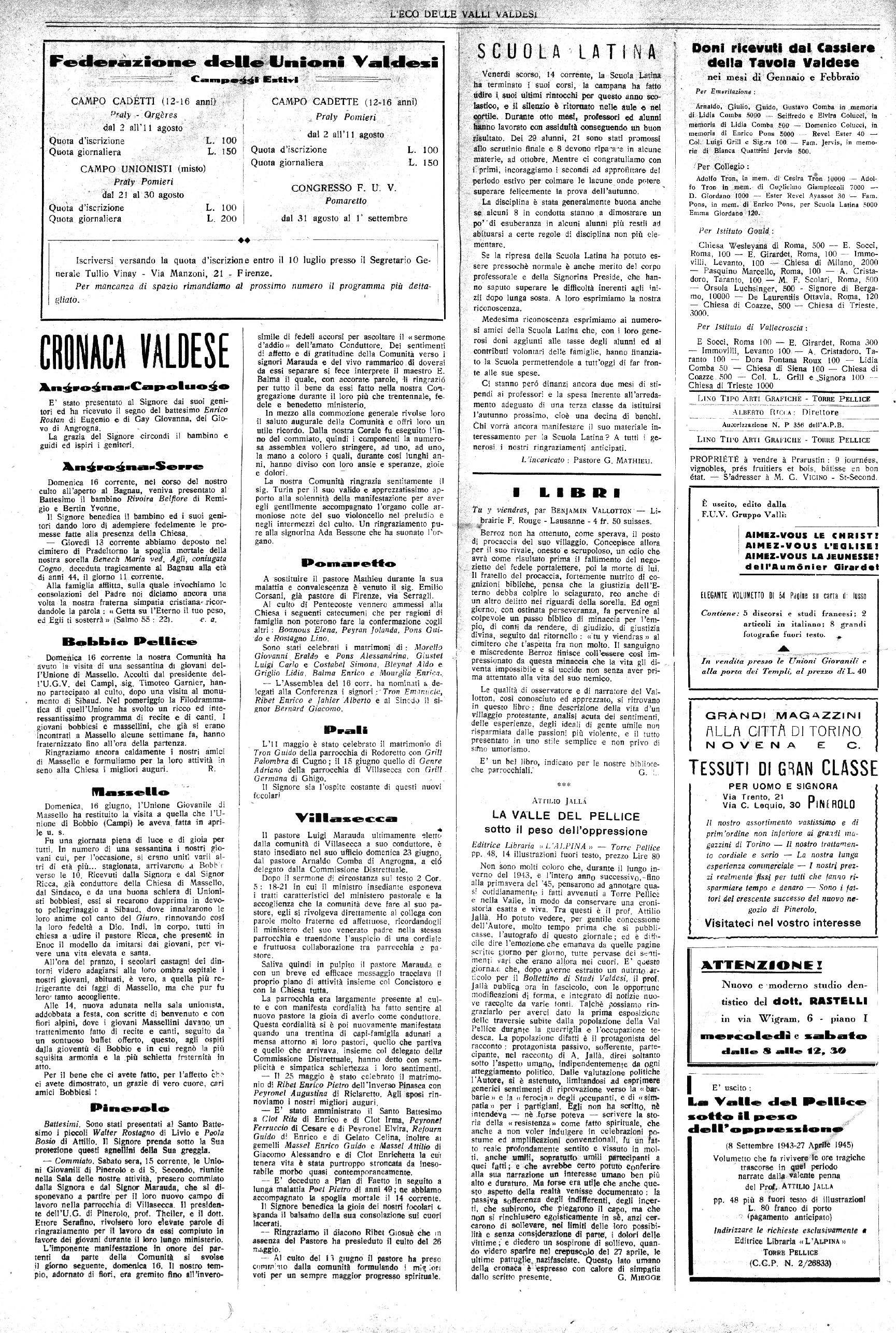 Il Presidente si associa a queste espressioni, ed il pastore L. Rivoire rivolge un riconoscente saluto al cappellano Bertinatti.