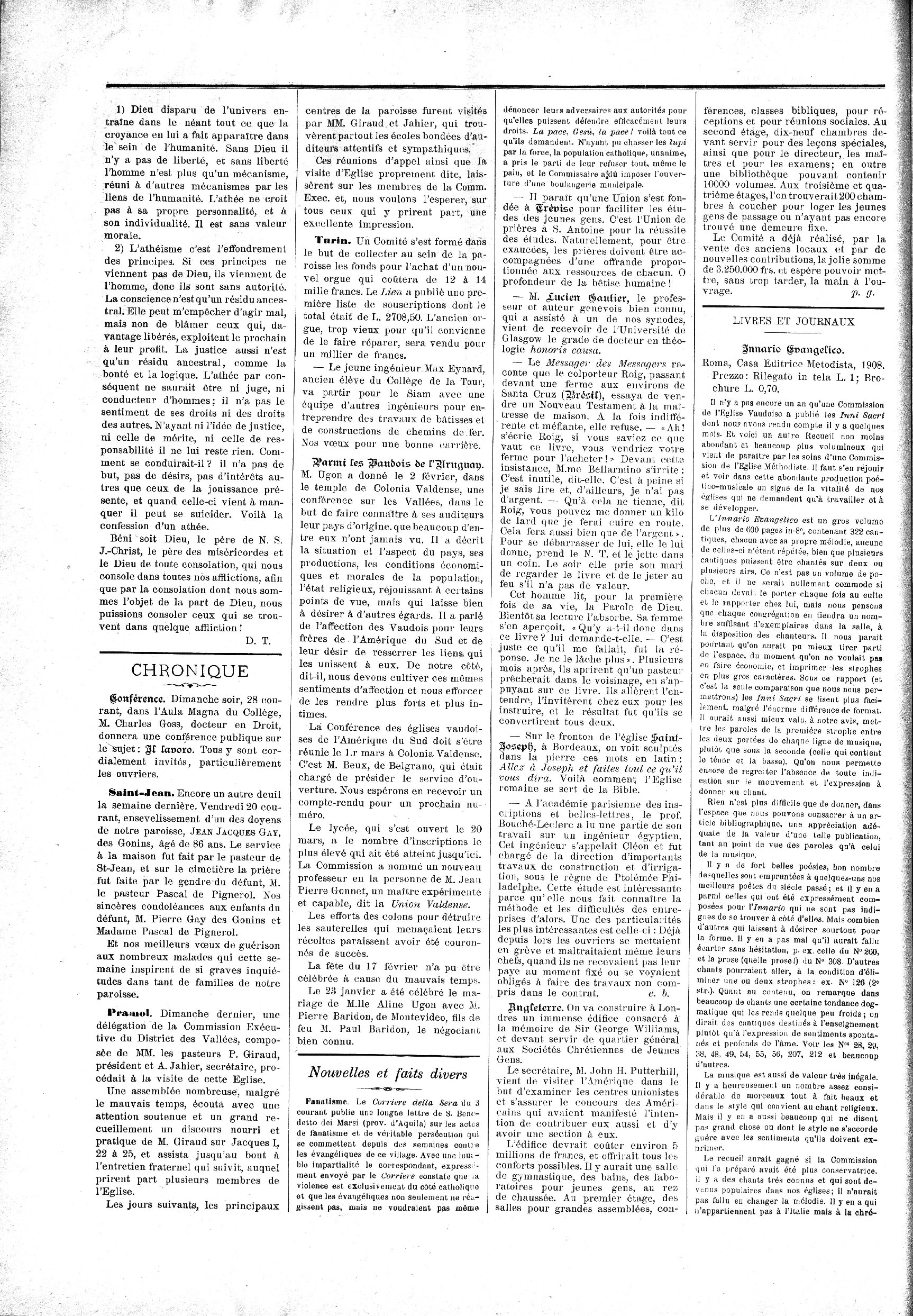 S'adresser pour la Rédaction à M. N. Tourn, prof., Torre Pellice,