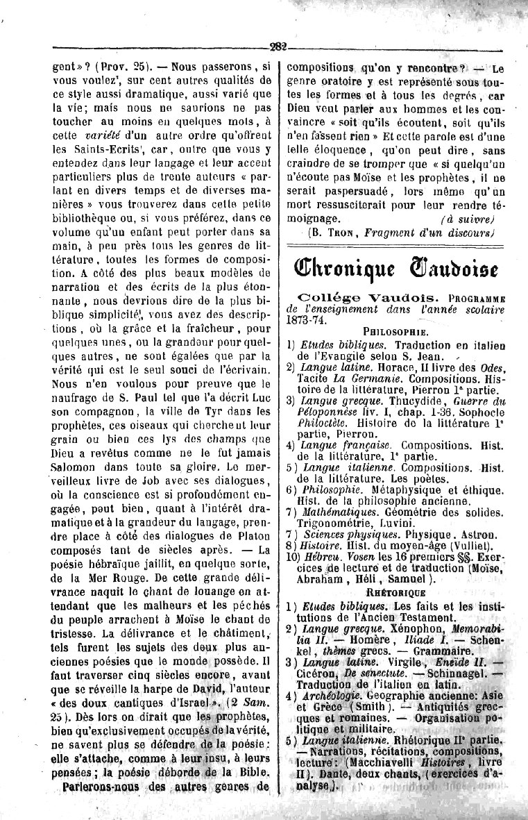 esprimer sa pensée. — Chronique vaudolse. — Chron. politique.