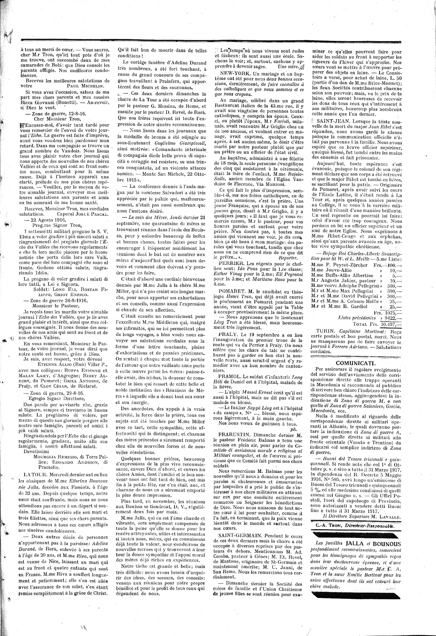 et pour l’Administration à M. J. CoïssoN, prof. Worte Pellice.