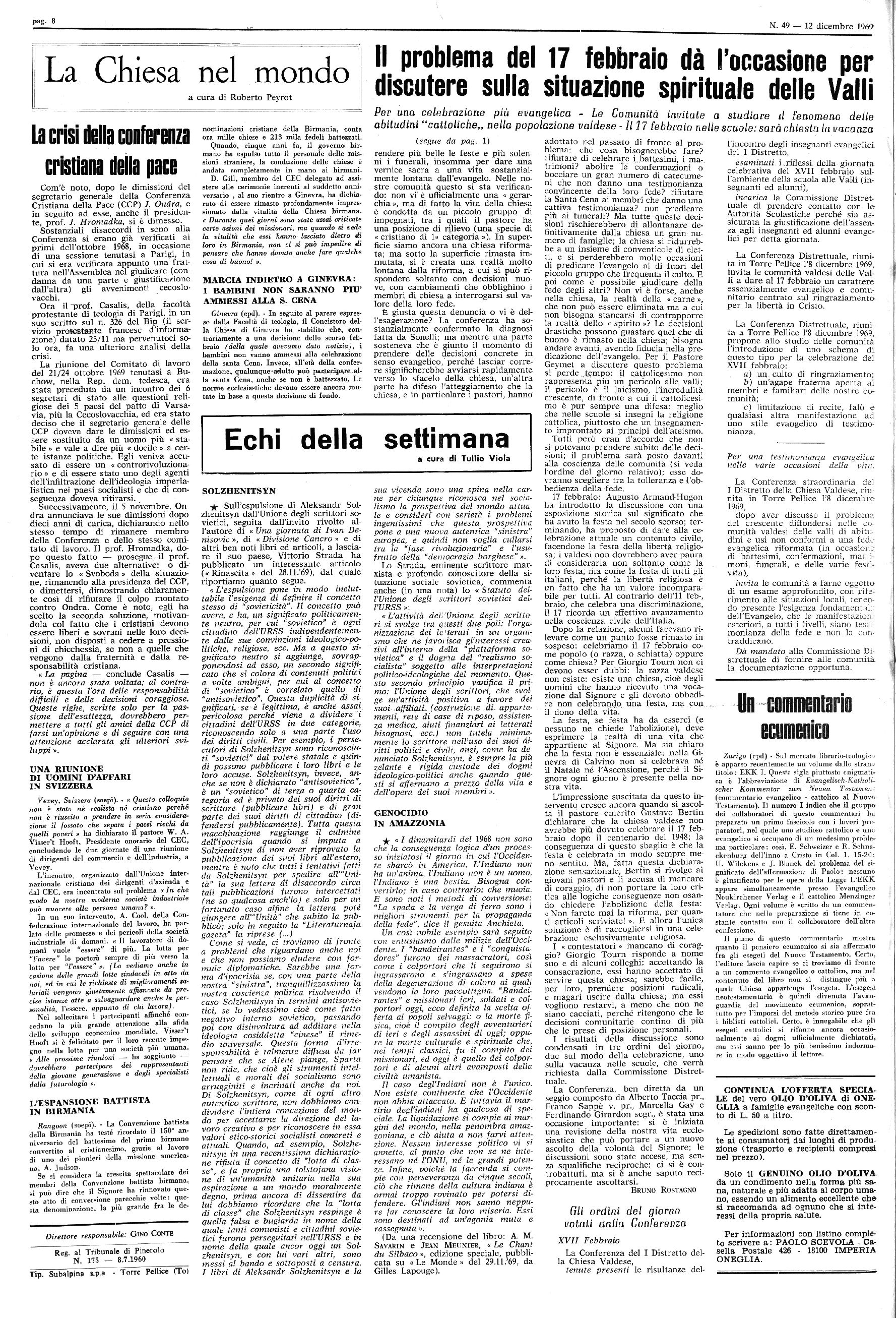 1 Anno 99 - iWan, 49 ilVAMTÌNTT f Eco; L, 2.500 per l’iiiterno I Sped. in abb. postale - I Gruppo bis/70 1 TORRE PELLICE - i2 Dicembre 1969