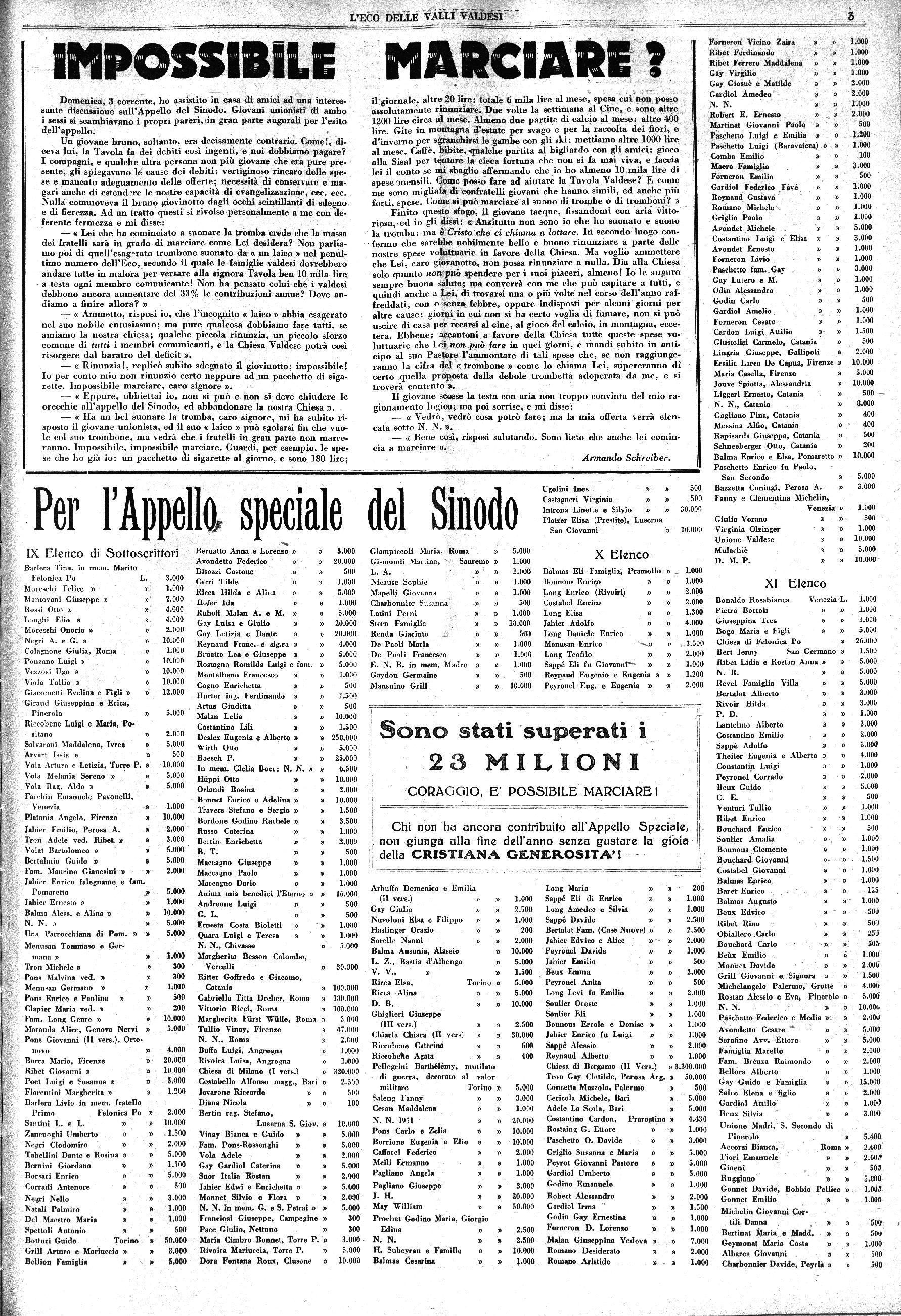 cullo di appello al quale parteciparono olIre al Pastore, il diacono S. Cairus ed il
