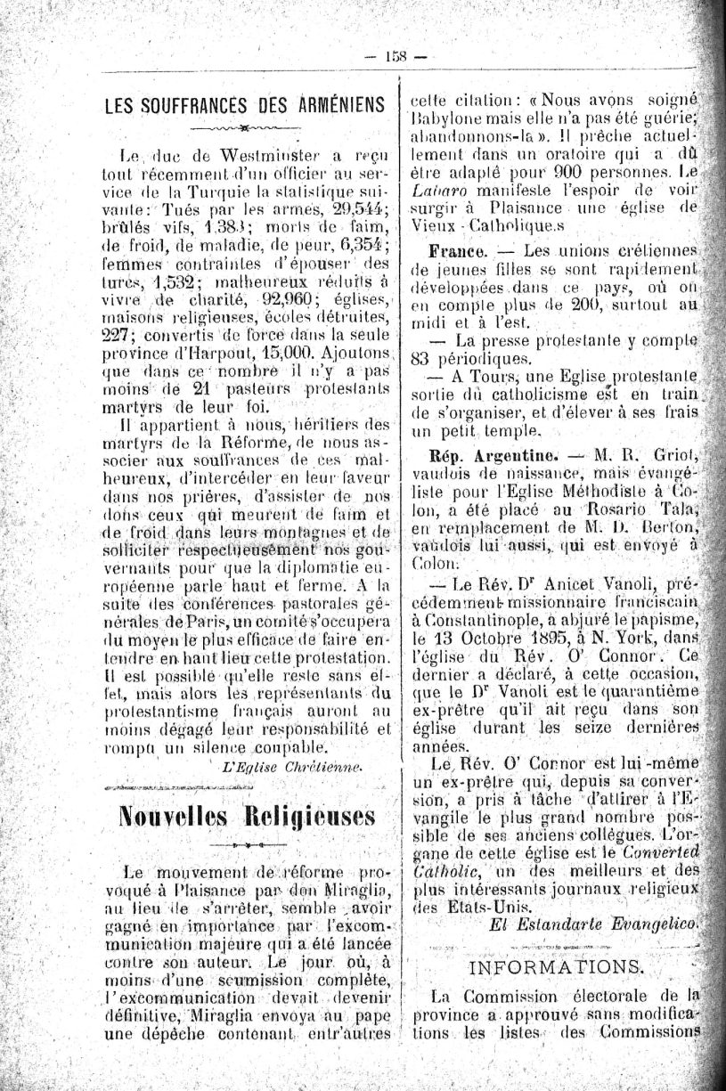 »•.? Bvangélisatitm — Missions ~ Los soiif?'■ ft'ancüs de.s Arménlpris — Nouvelles