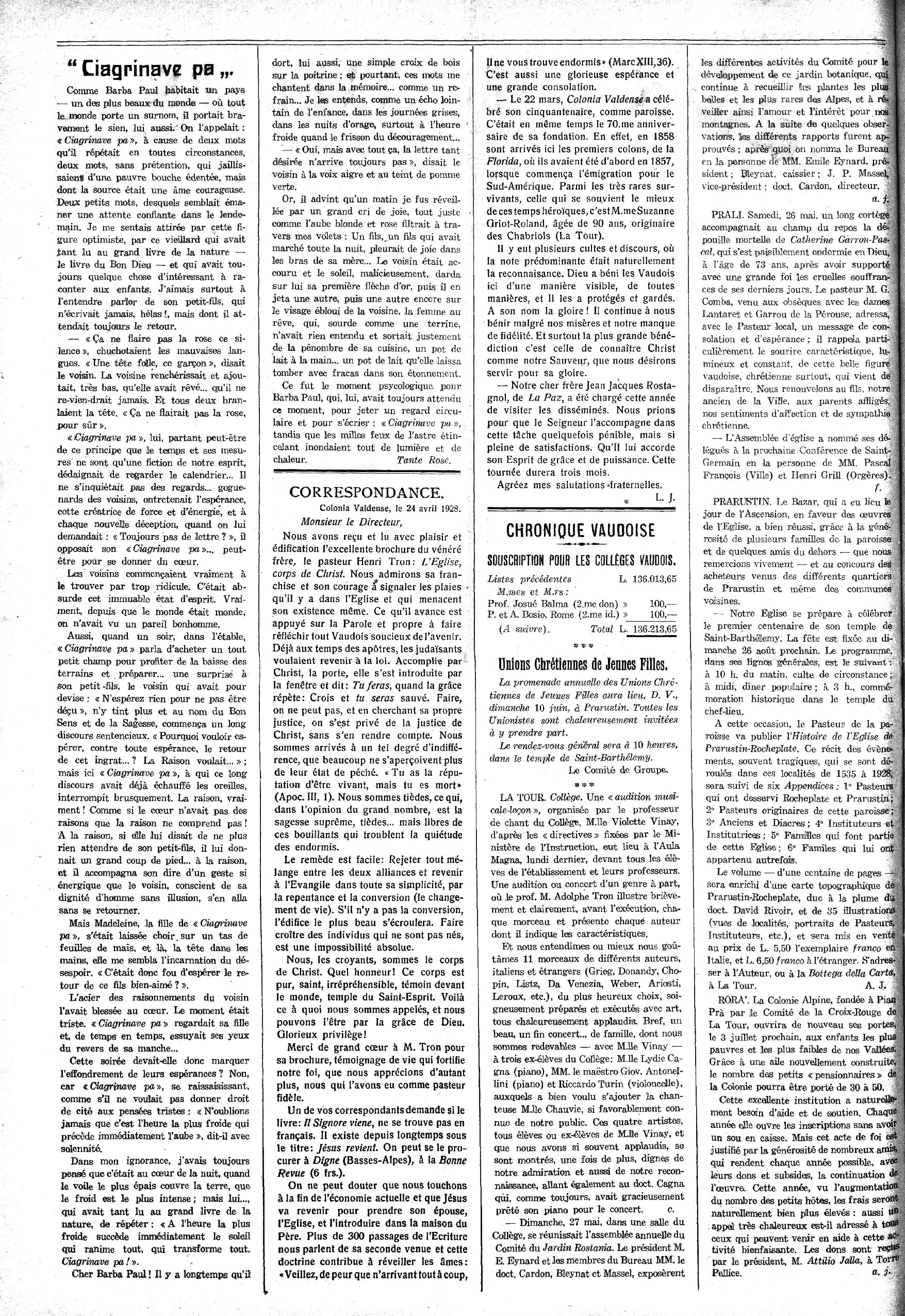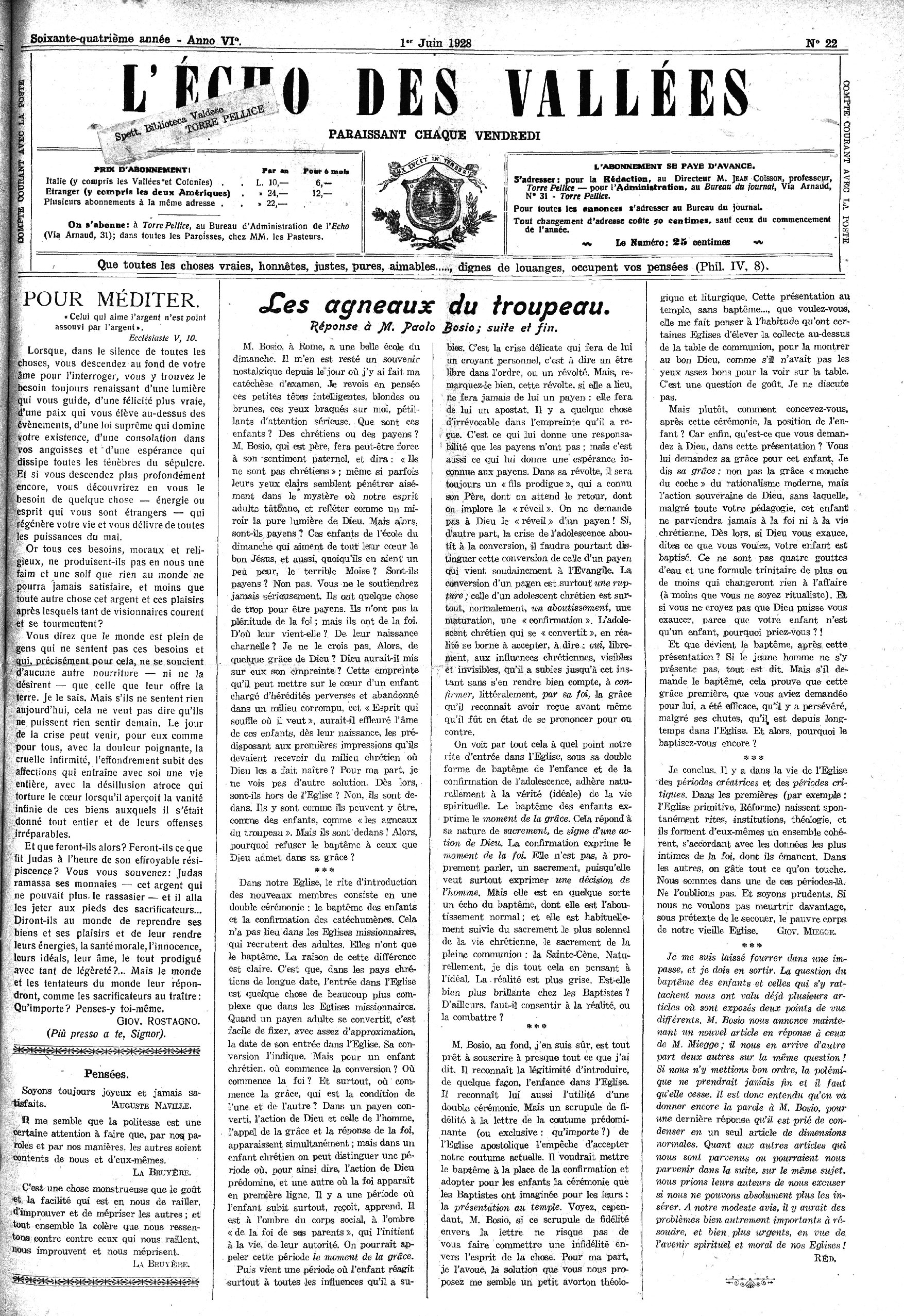 Torre Pellice — pour l’Administration, au Bureau du journal. Via Arnaud,
