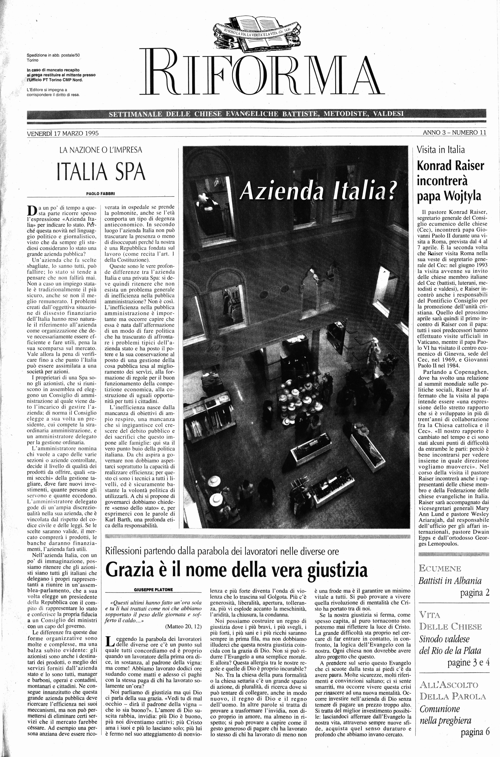 SETTIMANALE DELLE CHIESE EVANCiELICHE BATTISTE, METODISTE, VALDESI