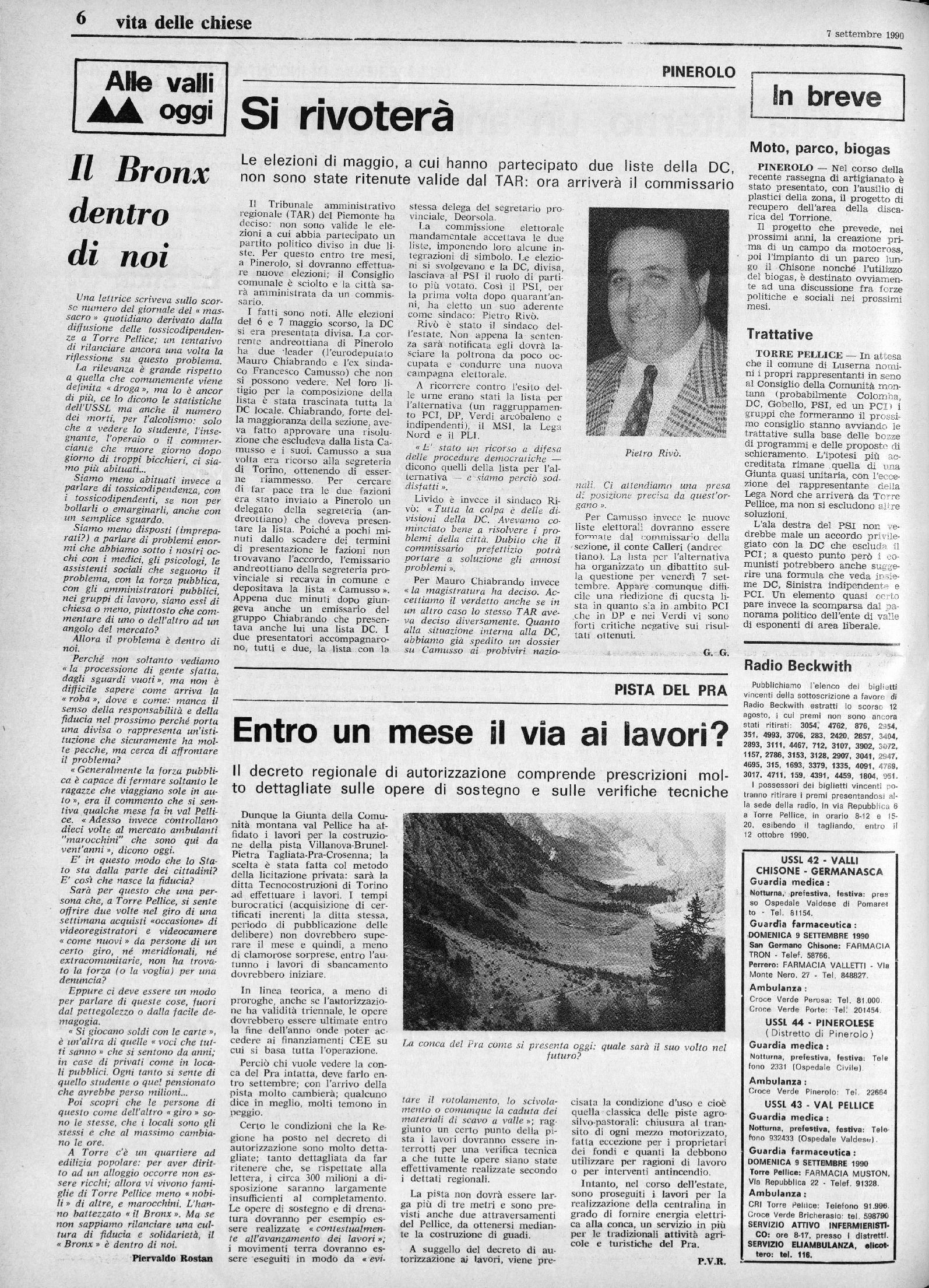 lire 2.000) presso la nostra amministrazione telefonando entro lunedì 10 settembre, ore 12,
