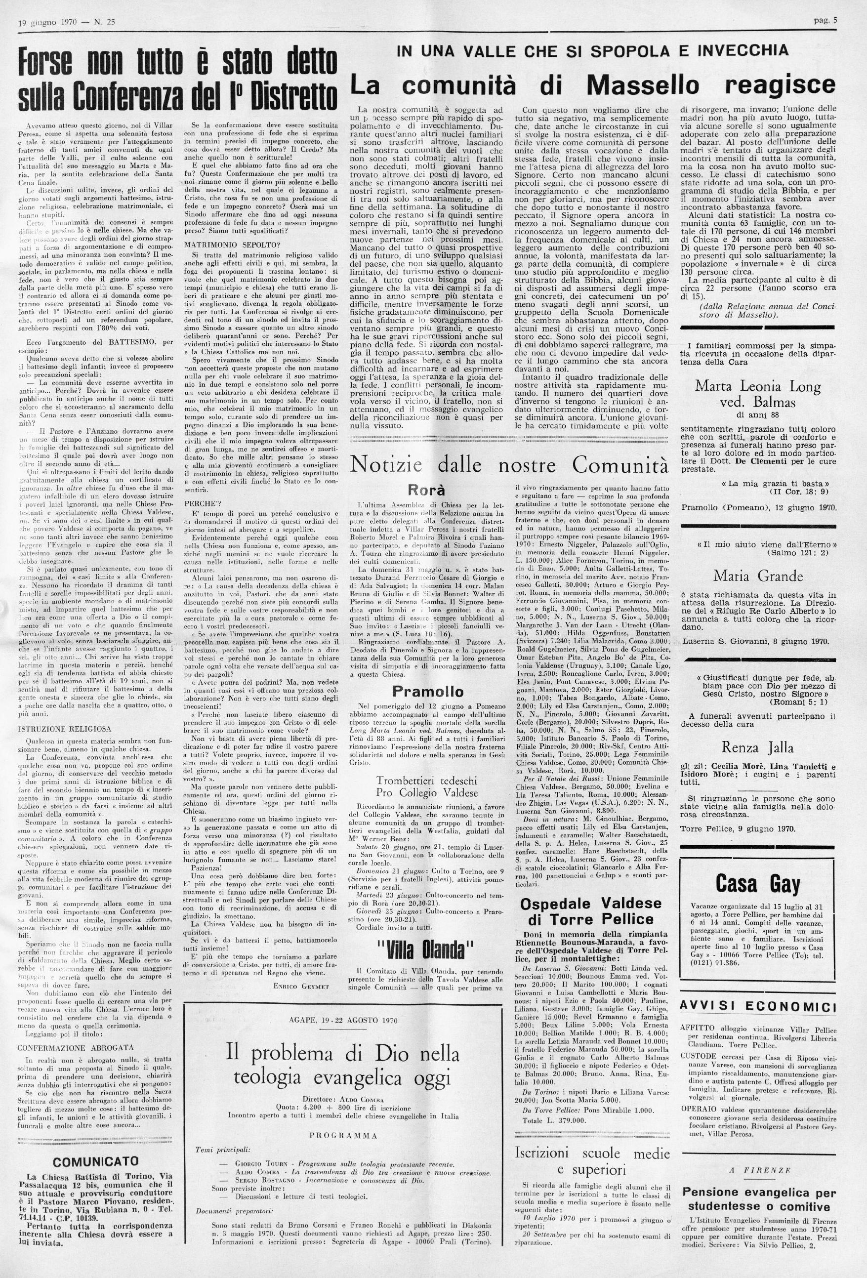 Anno 107 Niiin. 25 1 43H0AAÙENTI ^ P" l’interno ; Sped. in abb. postale - I Gruppo bis/70 1 TORRE PELLICE - 19 Giugno 1970