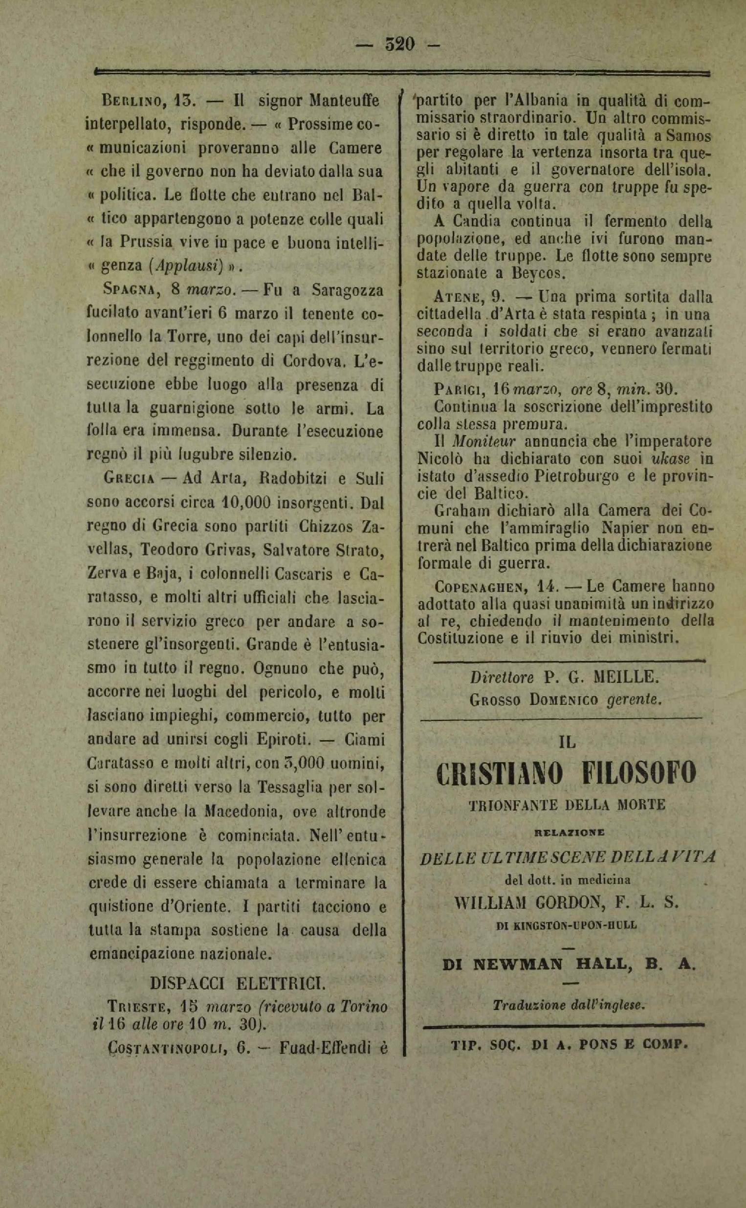 fucilato avant’ieri 6 marzo il tenente colonnello la Torre, uno dei capi dell'insurrezione del reggimento di Cordova. L’esecuzione ebbe luogo alla presenza di