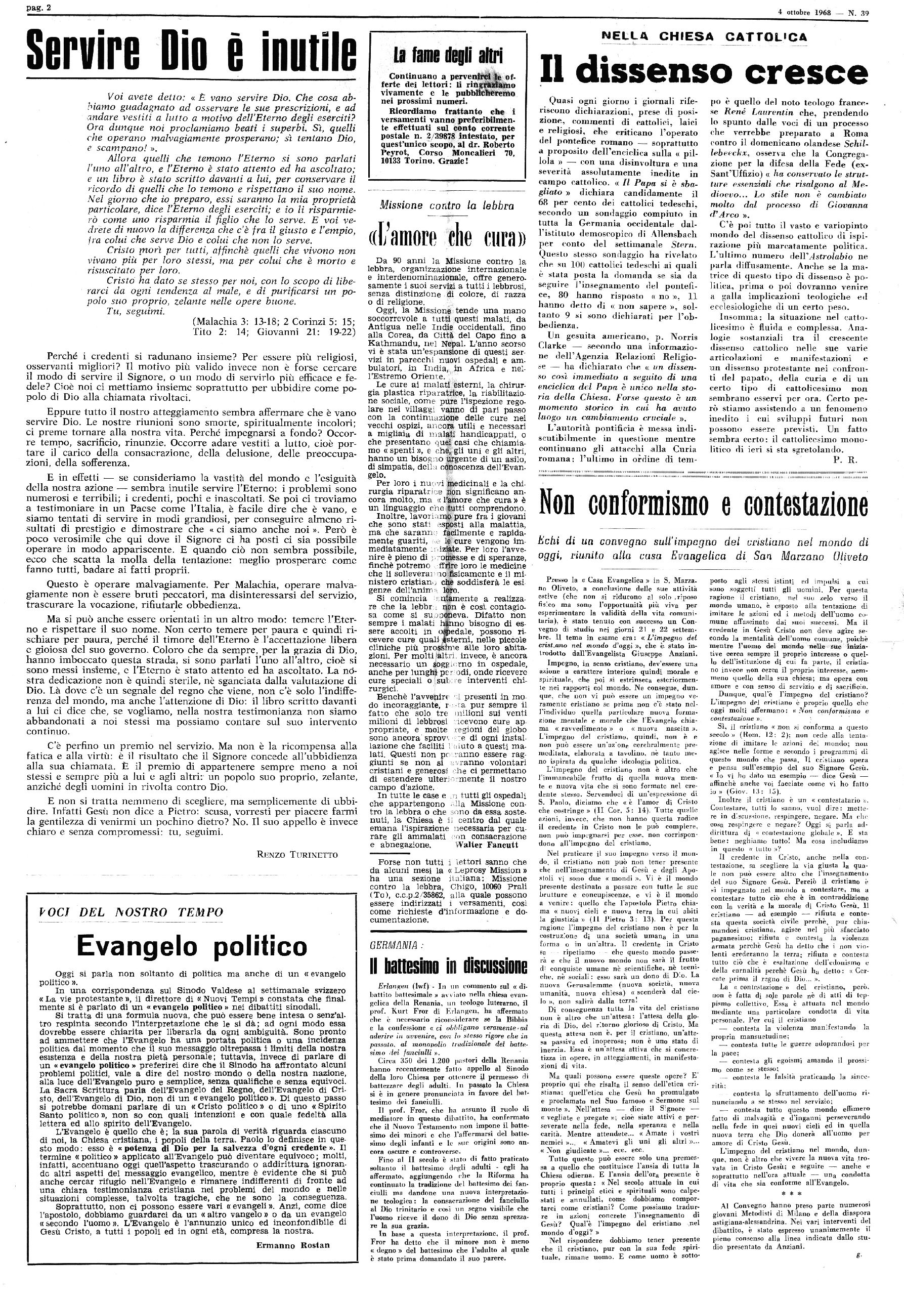 1 Anno 98 - N. 39 ABBONAMENTI f Eco: L. 2.500 per l’interno Spedizione in abbonamento postale . I Gruppo bis TORREiPELLICE -- 4 Ottobre 1968