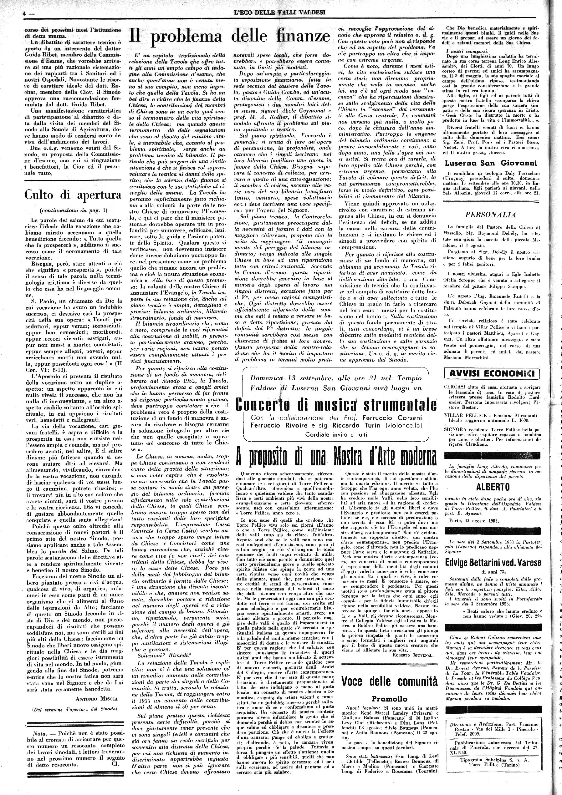 TORRE PELLICE, 11 Settembre 1953