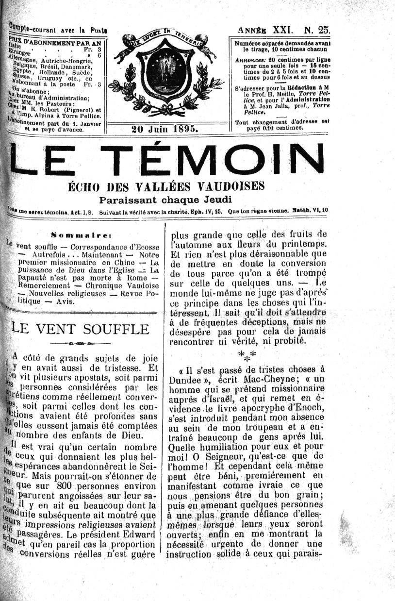 le Prof. H. Meille, Torre Pellice, et pour r Admlnlstntion