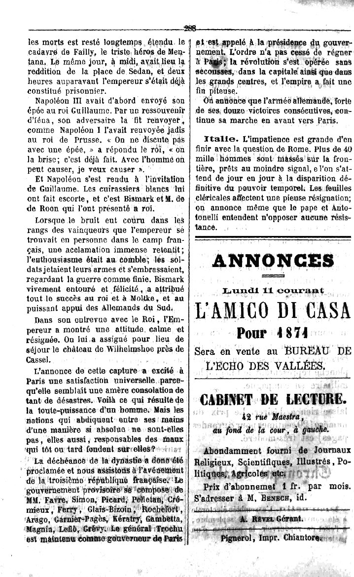mille I hommes sont massés sur la frontière, prêts au moindre signal, e l’on s’attend de jour en jour à la disparition définitive du pouvoir temporel. Les feuilles