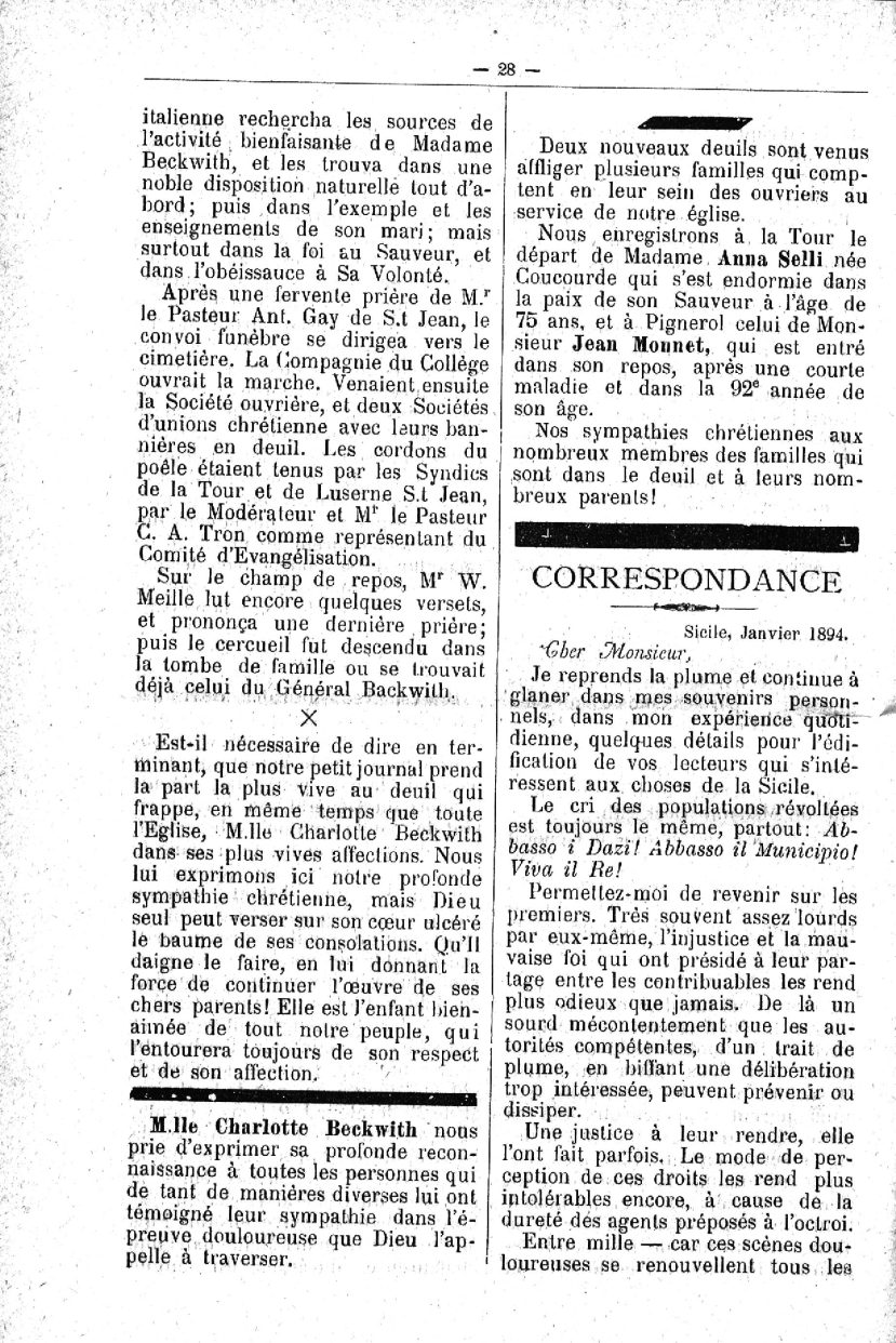 Monnet. —. Oorrespondance. — Chronique Vaudoise. — Ecoles dè 1’ Evangélisation;