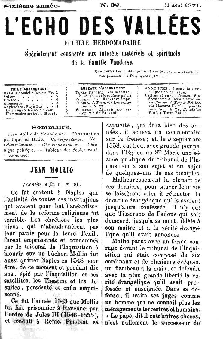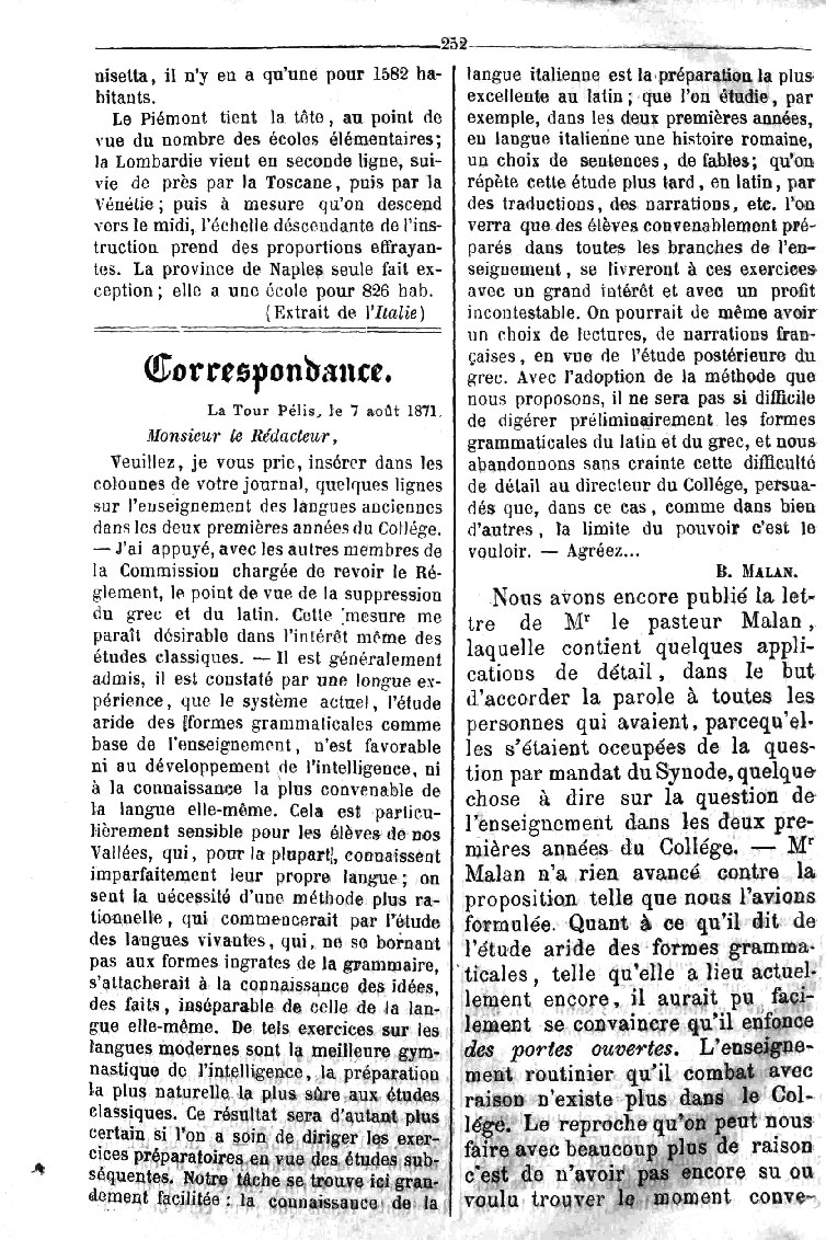 publique en Italie. — Correspondatice. — NonVelles religieuses. — Chronique vaudoise. — Chronique politique. — Tableau des écoles vaud.