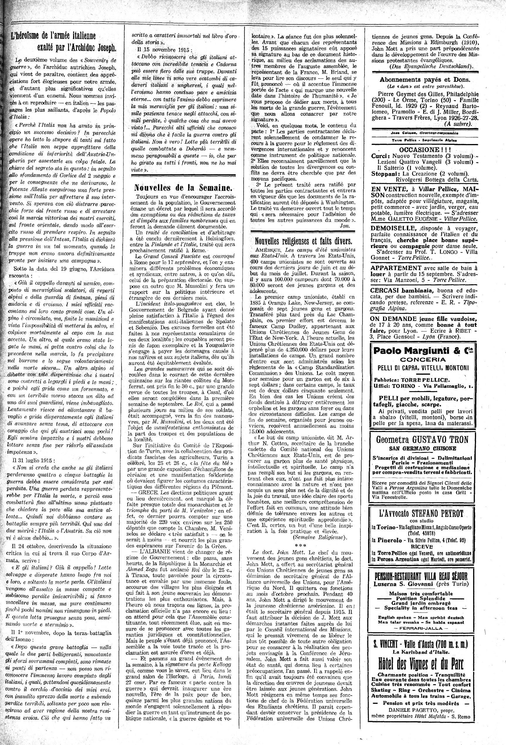 Torre Pellice — pour l’Administration, au Bureau du journal, Via Arnaud,