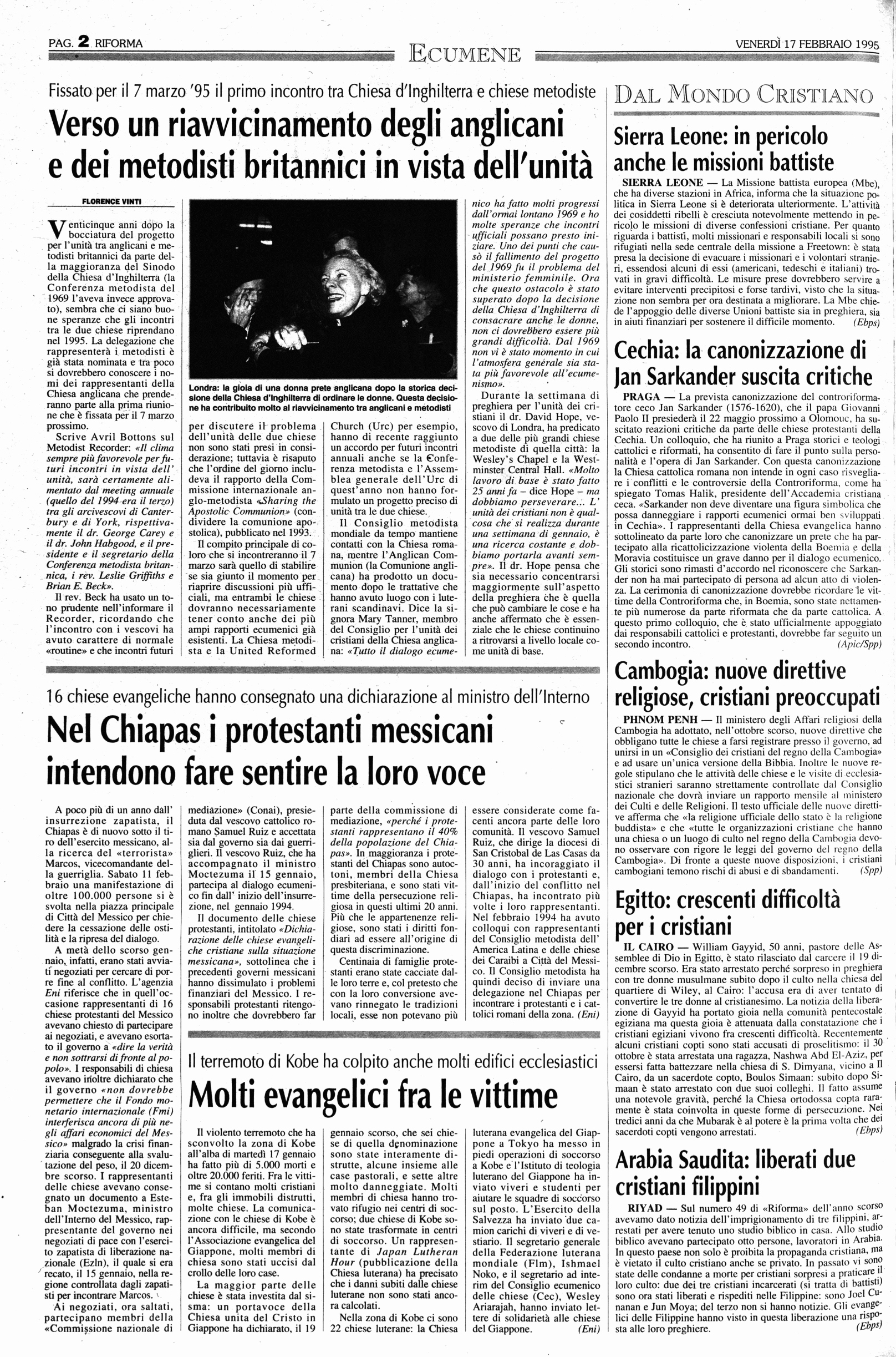 r SETTIMANALE DELLE CHIESE EVANGELICHE BATTISTE, METODISTE, VALDESI