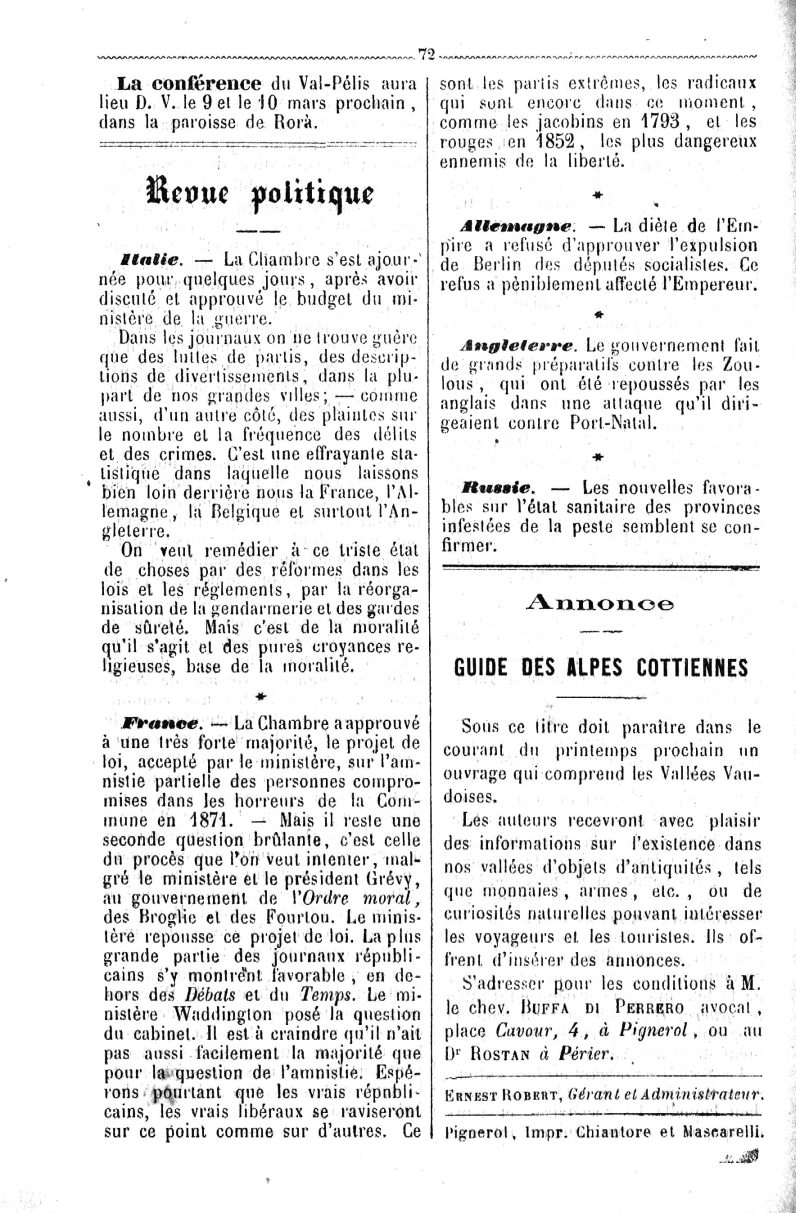 — i.e 17 Février à Turin. — CifrrMpondance. — Nouvelles religieuses el fnils