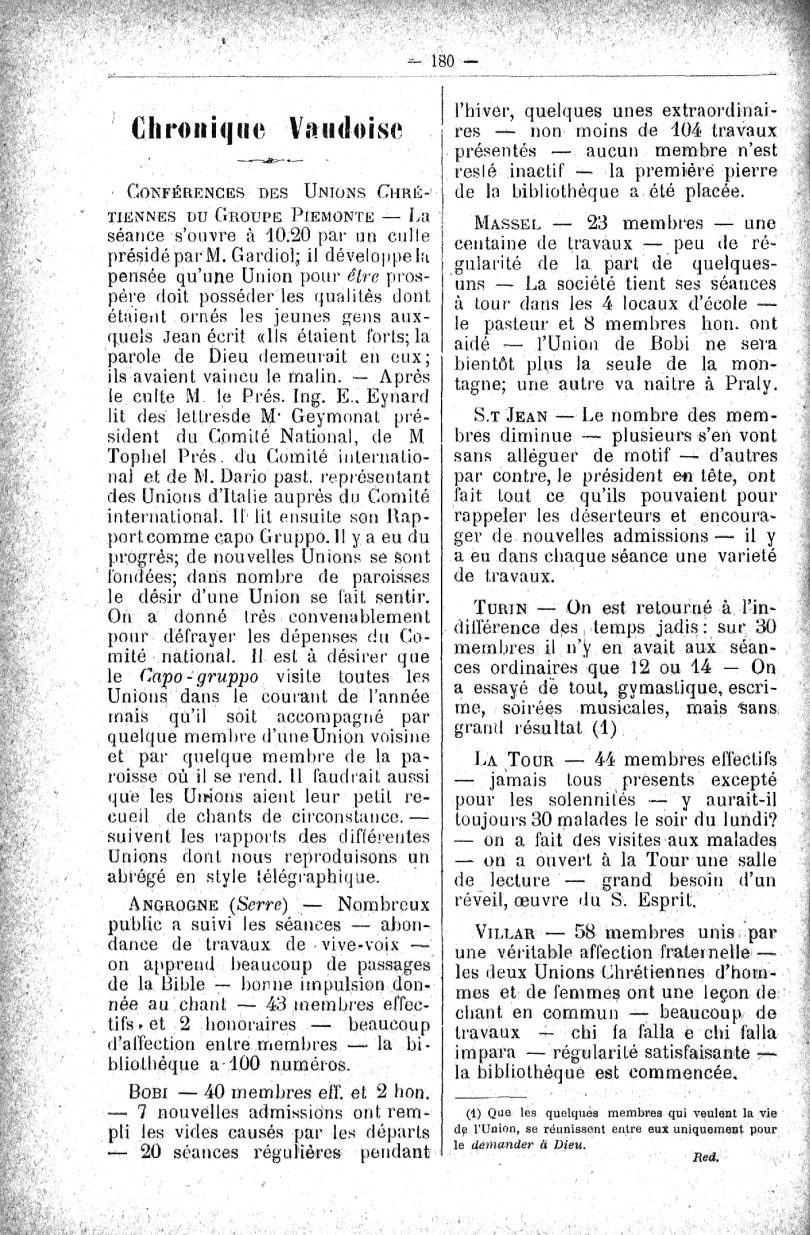 — Chronique Vaudoise — Evangélisation — Nouvelles Religieuses —
