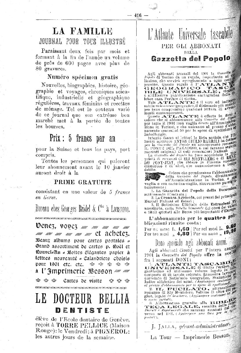 Per ini mese Ij. 1,60 Per sei mesi L.