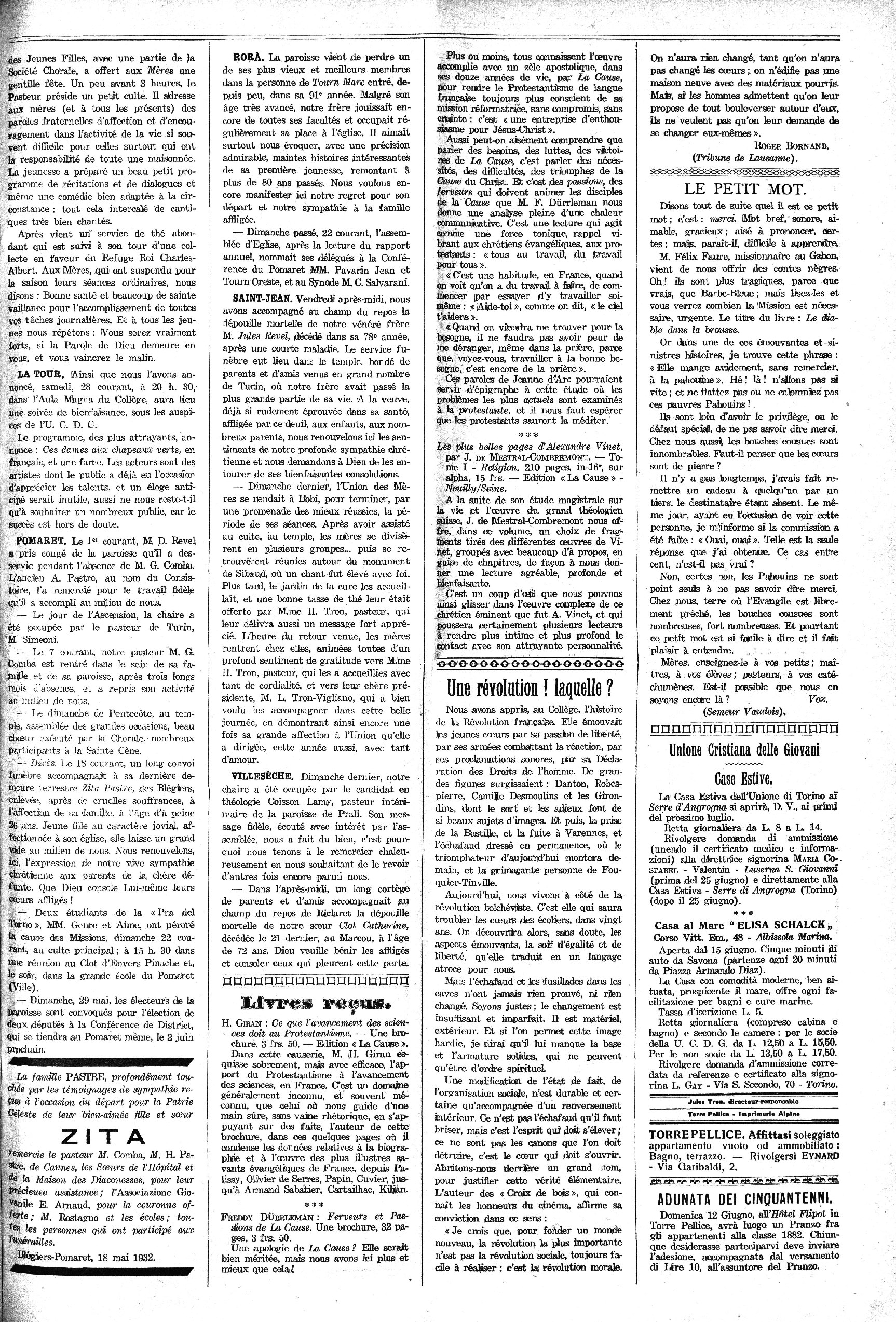 S'adresser : pour la Rédaction, à M. le Prof. Gi^o Costabel - Le Collège TorrePellice — pour l’Administration, au Bureau du journal. Via Arnaud, N° 25 Torre Pellice.
