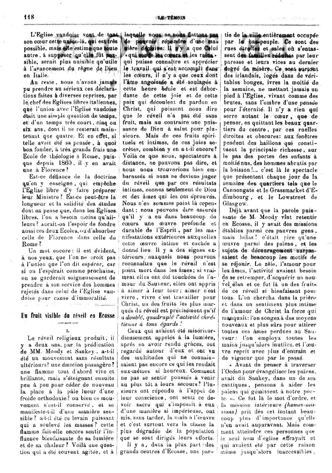 entre la Mission vaudoise et l’Eglise libre. Nous entrons en matière en faisant un dernier emprunt à cette lettre remarquable
