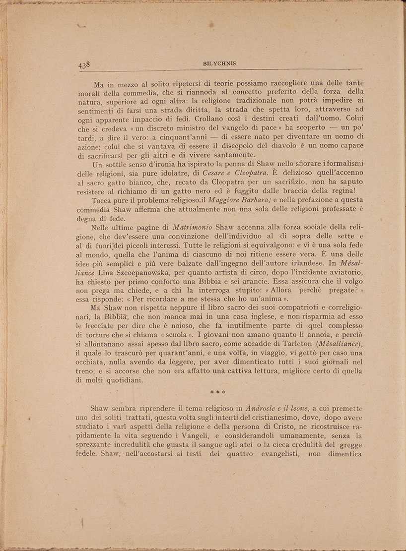 B. BRUNELLI : Bernard Show e la religione Per la cultura dell’anima :