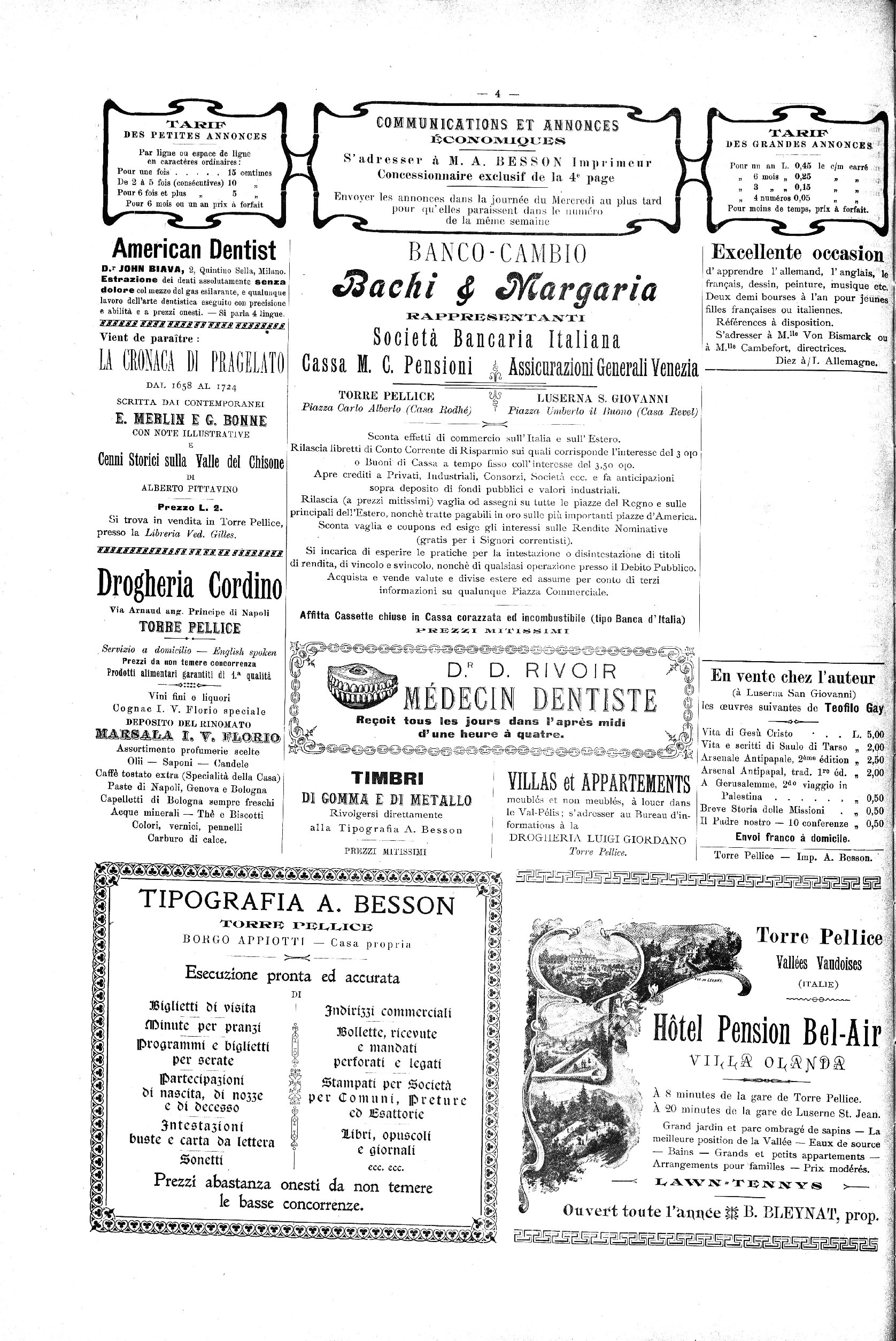 S’adresser pour la Rédaction à M. N. Toum, prof., Torre Pellice,