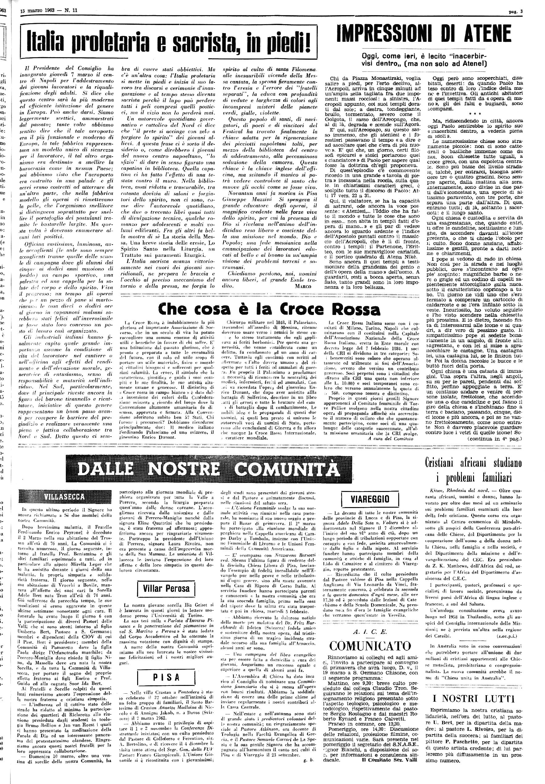 ' Anno xeni - Num. 11 ABBONAMENTI / Eco: L. 1.500 per l’initemo « Eco de« Presenza Evangelica » | Spedir, abb. poetale - I Gruppo 1 TORRE PEIXICE - 15 Marzo 1963