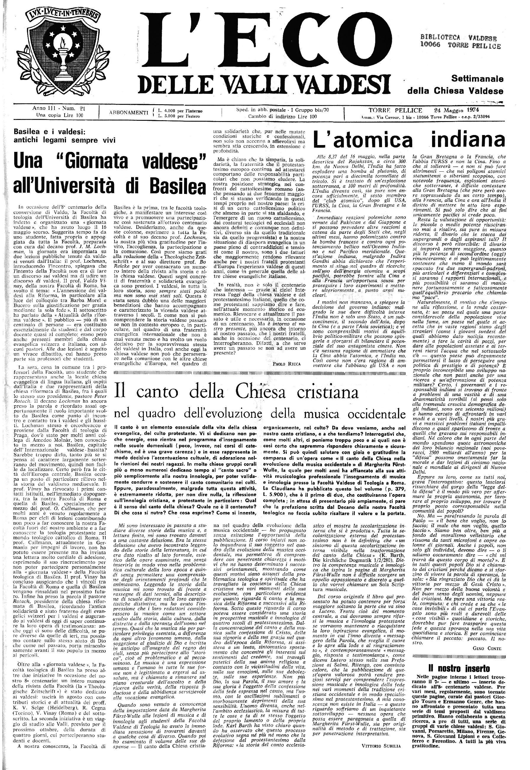 TORRE PELLICE 24 Maggio 1974