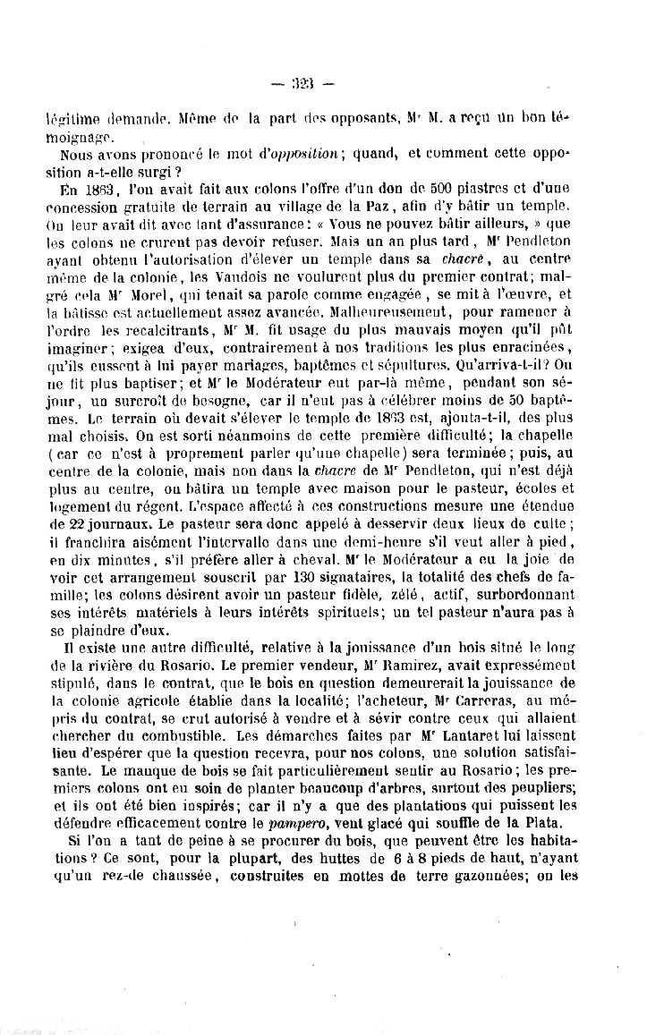 par heure, M’ Lantaret arriva enfin à la Colonie, le 2 août. Il lui a fallu traverser d’abord la colonie dite Suisse, formée d’éléments très-mélangés, tant