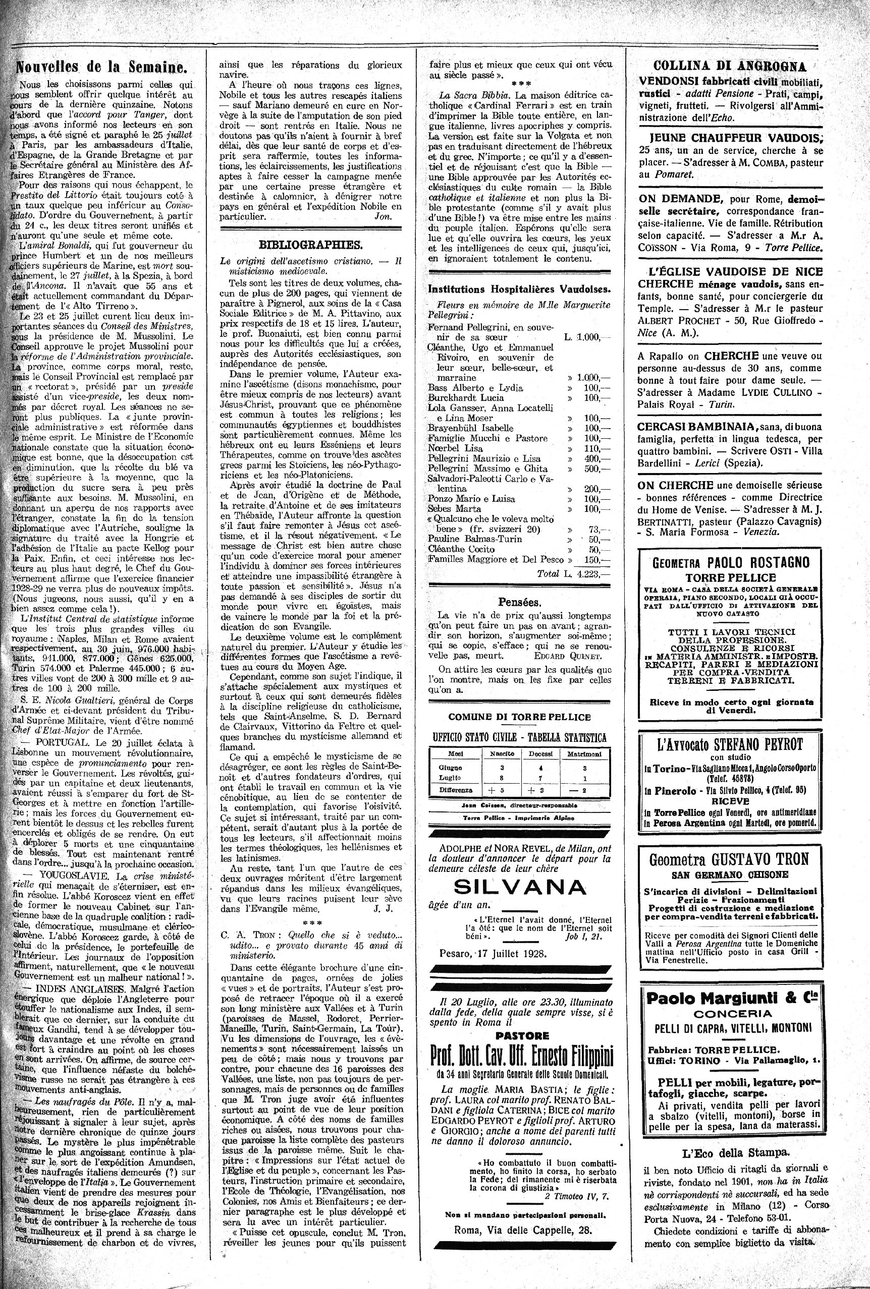Torre Pellice, le 25 juillet 1928.