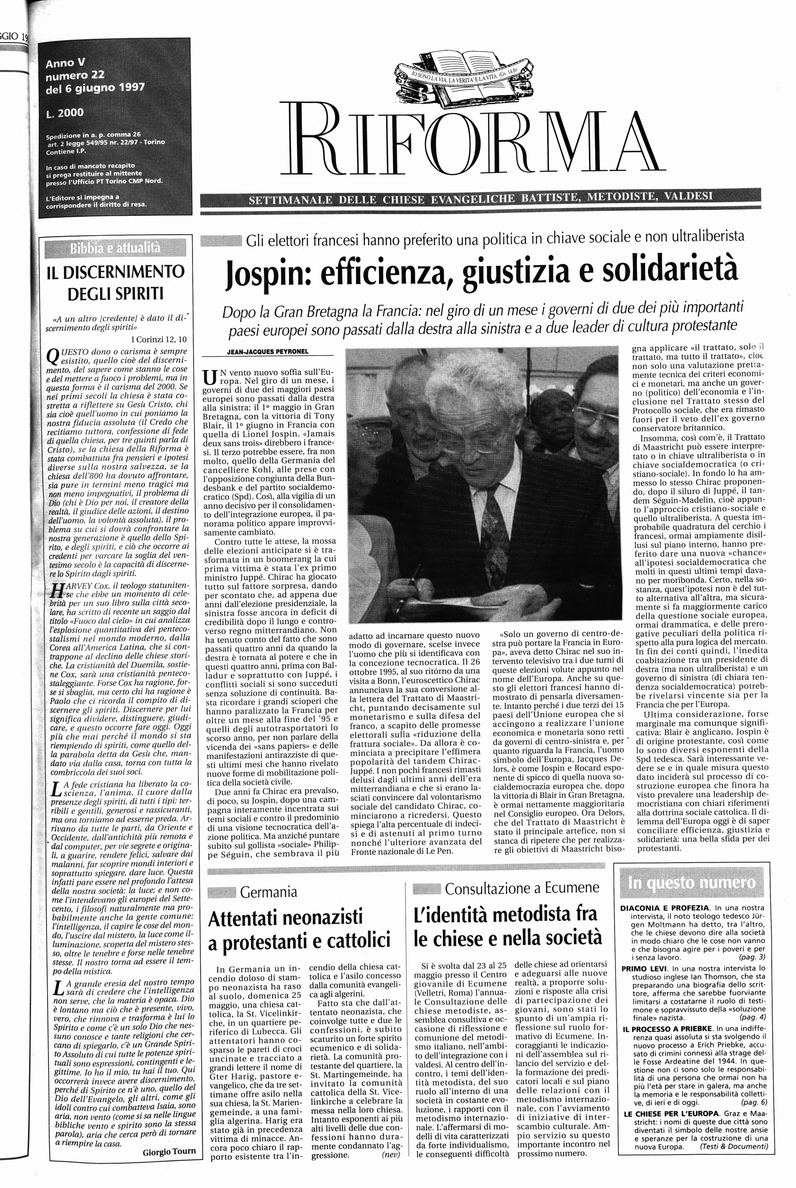 Jospin: efficienza, giustizia e solidarietà