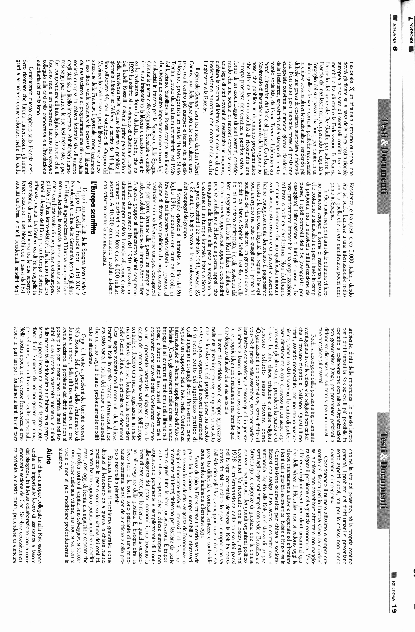 SKi I IMANALE DEl.LE CHIESE EVANGELICHE BATTfSTE, METODISTE, VALDESI