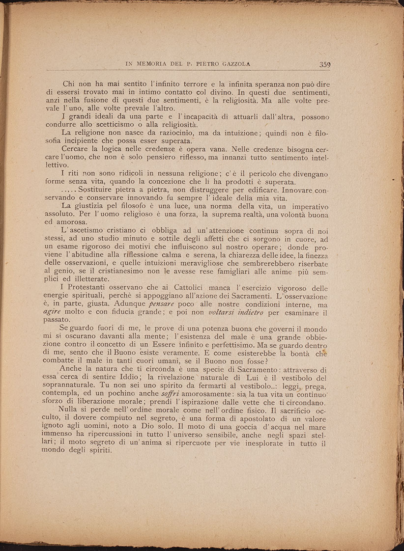 Giovanni PIOLI: In memoria del P. Pietro Gazzola ...... » 350