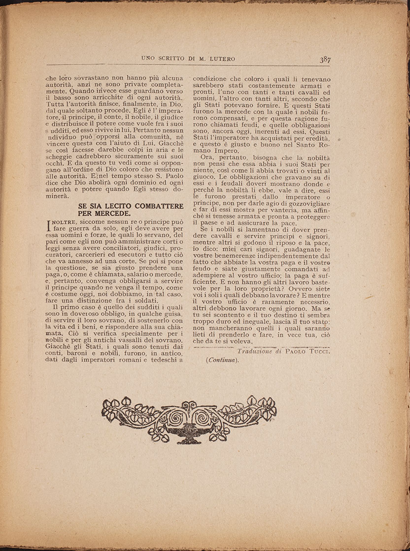 PAOLO lucci: Uno scritto di M. Lutero: “Se la gente j di guerra possa, anche essa, essere in istato beato".