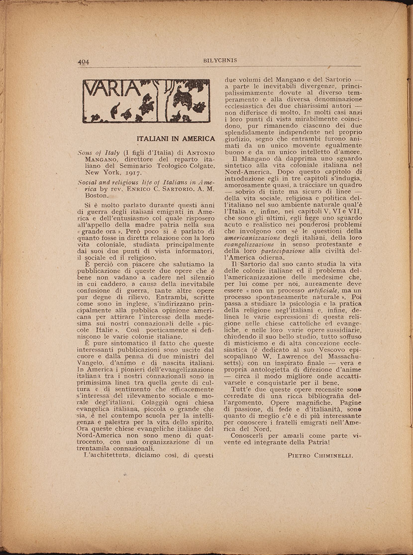 Varia: Italiani in America (Pietro Chiminelli) - Corpus Scriptorum Latinorum Paravianum (Giovanni Costa) - Pubblicazioni pervenute alla Redazione.............................................. ■ 404